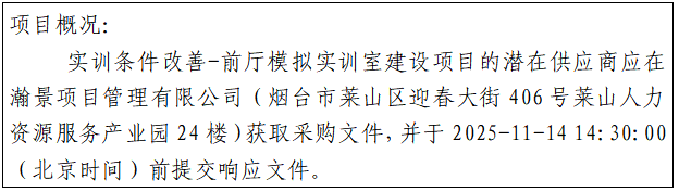 山东商务职业学院实训条件改善—前厅模拟实训室建设项目竞争性磋商公告