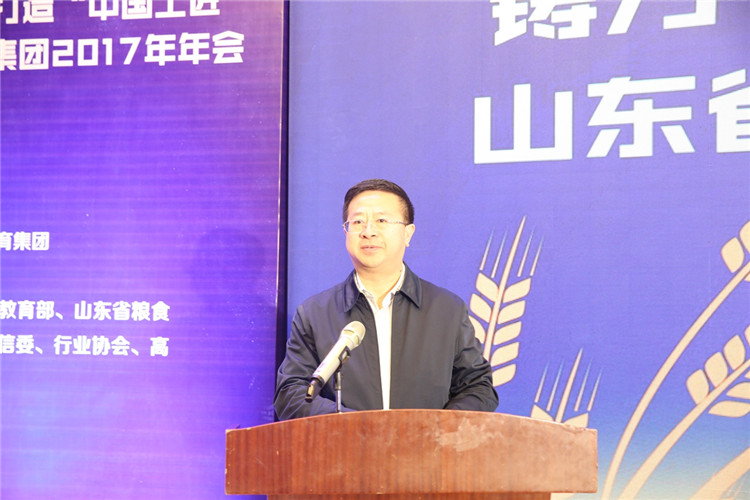 山东省粮食职业教育集团理事长、山东商务职业学院党委书记耿建敏作2017年集团工作报告。