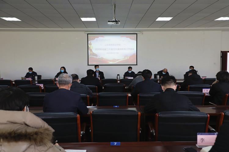 本站讯 4月10日上午,我校召开2020年党建暨党风廉政教育工作会议。学校领导班子成员、各处室、系部党政负责人在办公楼一楼学习中心参会,济南校区的领导干部及各党支部书记、副科级及以上领导干部参加视频会议。会议由党委副书记、院长杨新春主持。