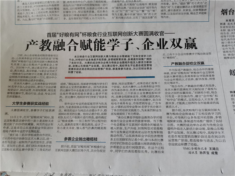 烟台日报:产教融合赋能学子、企业双赢:http://www.shm.com.cn/szb/ytrb/paper/pc/content/202010/15/content_32416.htm