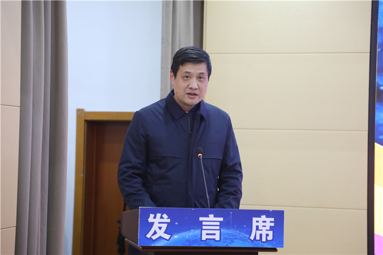 耿建敏发表讲话,他首先向关心、支持和帮助中国航天五一三所校企合作基地筹建的各位领导和朋友表示衷心感谢,他表示此次成立校企合作基地,是我校在现有优质资源和办学模式的基础上,与中国航天五一三所强强联合的创新成果,是我校智能制造学院人才培养的深化,也标志着我校的校企合作工作又迈出了更坚实的一步。最后他希望中国航天五一三所能够一如既往的支持我校的建设发展,能够持续深化交流,强化合作,同心协力,为校企合作基地越办越好共同奋进。