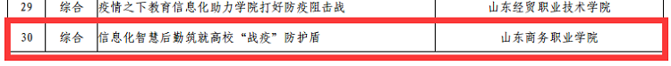 本站讯 近日,《山东省教育厅关于公布疫情防控环境下信息化应用优秀案例评选结果的通知(鲁教科函〔2021〕4 号)》公布了评选结果。经专家评审,全省共评选出35个高职院校优秀案例。我校教务处提报的《量、质双保,停课不停教(学)》、后勤服务处提报的《信息化智慧后勤筑就高校“战疫”防护盾 》两项入选。