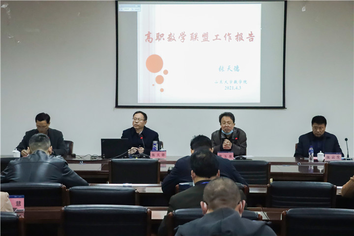会上,张云生代表学校向与会嘉宾表示欢迎,并简要介绍了学校的基本情况及取得业绩,同时列举了数学教研室取得的丰硕的教科研成果。崔玉泉肯定了山东高职数学联盟取得的成绩并提出了殷切希望。张天德教授代表第二届高职数学课程建设联盟做了工作报告。会议完成了第三届高职数学联盟换届选举工作,我校副院长张云生被推选为2021年高职数学课程建设联盟副会长,王九福为联盟秘书长。随后张天德教授为大会做了关于大学数学教学创新思路及实践的学术报告,德州职业技术学院赵树欣老师作了关于高等数学教学能力大赛的讲座,我校赵明才副教授做了关于高等数学课程思政的讲座,与会老师们享受到了一堂堂高质量的学术盛宴。
