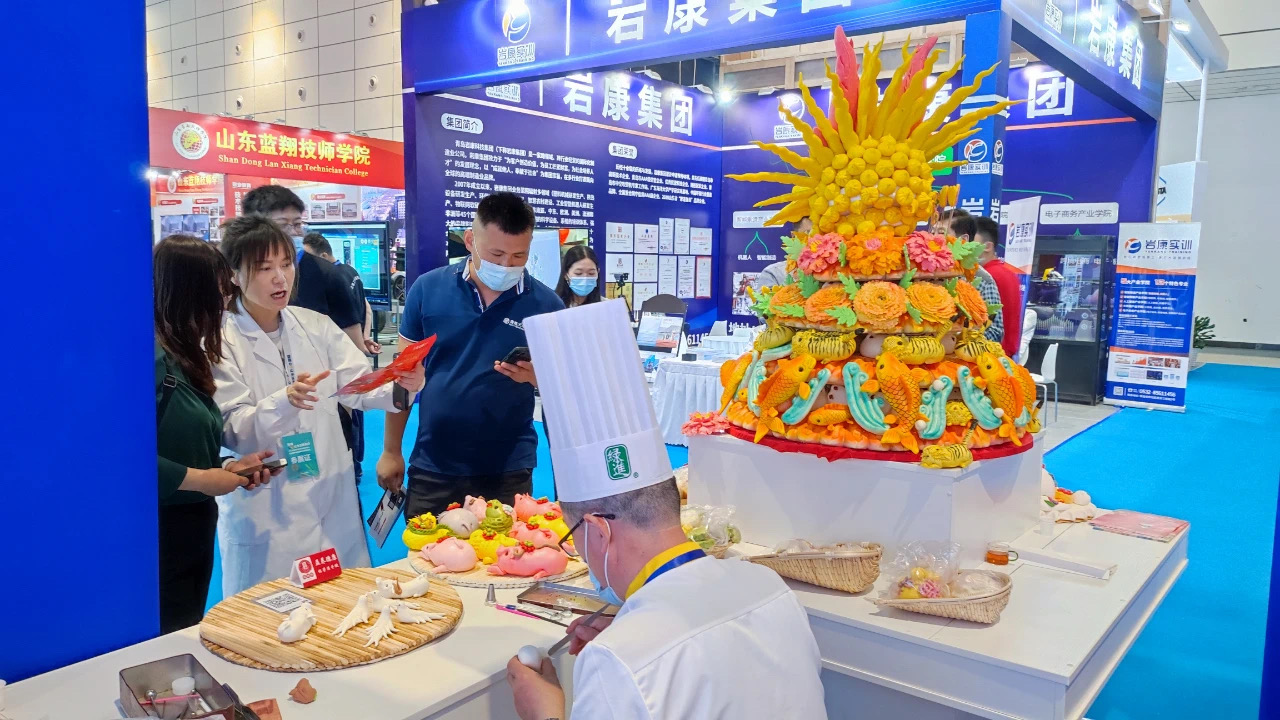 山东省粮食职教集团展厅的设计、施工、布置全部由集团自主完成,展区展示了“胶东特色花饽饽”,展示中邀请非物质文化遗产传承大师林荣涛带领学生现场展示制作。其中以“龙”为主题,由牡丹、虎、鱼等组成,寓意富贵有余、蒸蒸日上、红红火火的巨型花饽饽,迅速走红展馆,引起围观驻足,成为拍照打卡地。