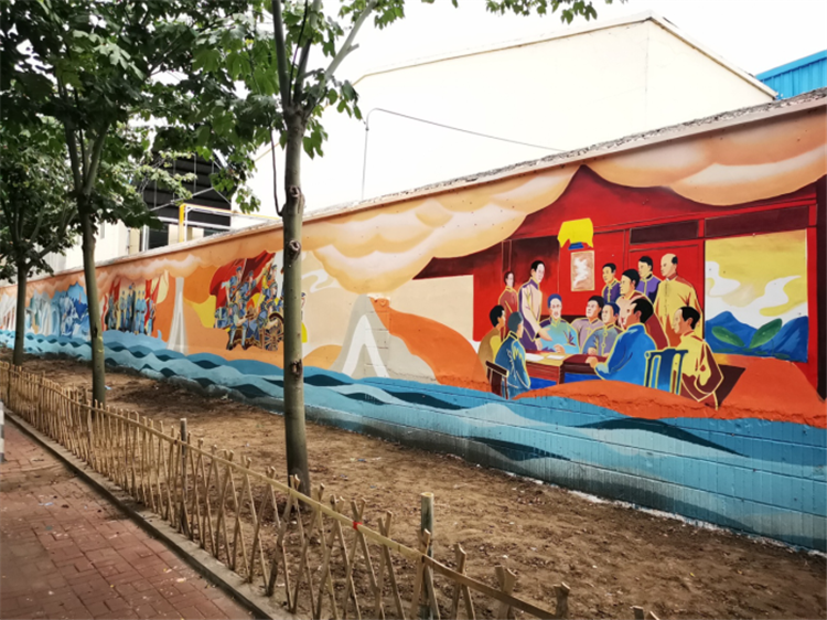 陶传蔚一行参观了由我校艺术设计学院完成的迎中国共产党建党100周年特别手绘的百年华诞彩绘墙项目,项目历时30天,在建党100周年前夕正式竣工交付使用,该项目也成为龙口市青少年爱国主义教育基地。据悉,百年华诞彩绘墙是由山东商务职业学院艺术设计学院广告专业的老师带领学生历时30天绘制完成2300余平方,是校企深化合作的成果,整体效果得到了群众和社会各界广泛好评。随后一行人参观了优秀党支部阵地、生产车间、研发中心、产品展厅等,听取了中粮油脂龙口有限公司生产、物流、产品以及食品安全管理、生产安全管理、后续发展规划等情况介绍,了解了公司发展现状、产品情况及目前存在的技术难题和后期发展思路。