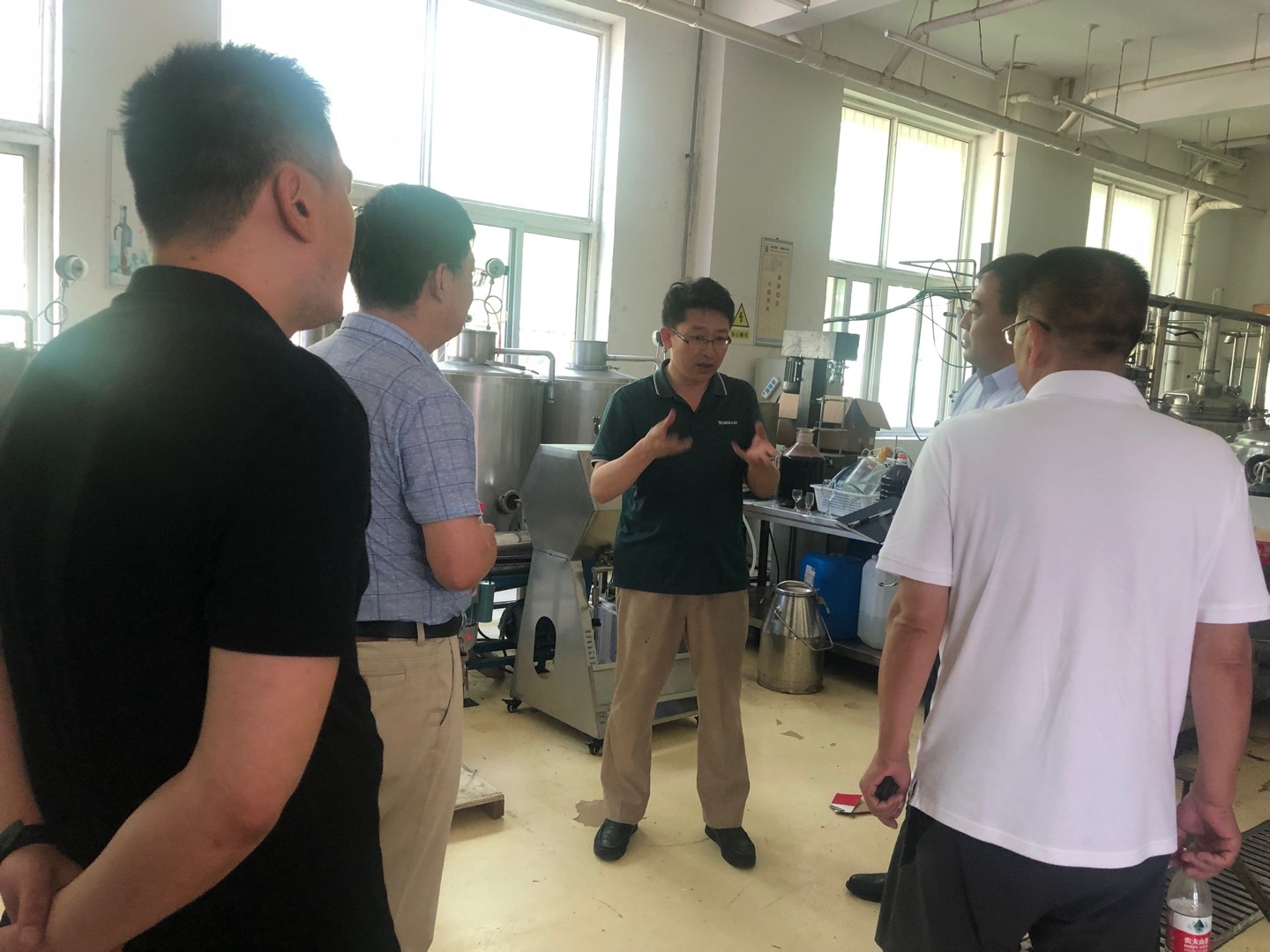 随后王家好一行参观了粮油食品学院制粉、酿酒等实训室及设施设备,对我校的教学设备、实训设施赞不绝口。