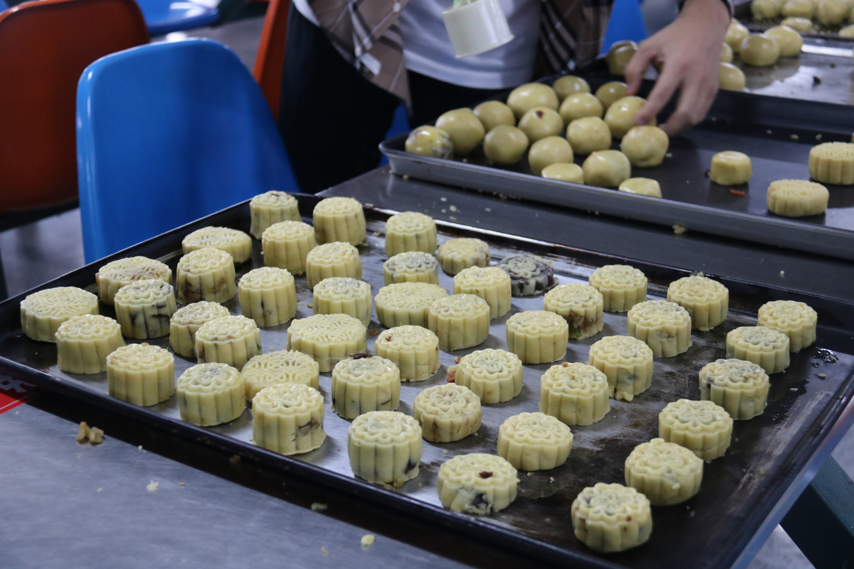 9月21日上午,在基础教学部、智能制造学院共同组织开展的“颂百年华诞 庆别样中秋”制作月饼活动中,学院邀请专业的烘焙志愿者担任老师,演示月饼的制作方法,从称量面团到擀皮,从包馅到压模,不到十分钟皮薄馅靓的月饼就做好了。特殊磨具压出的“中国”字样,格外显眼。当看到一个个漂亮的月饼从自己手中诞生,看着自己的劳动成果,大家脸上都露出了欢快的笑容。