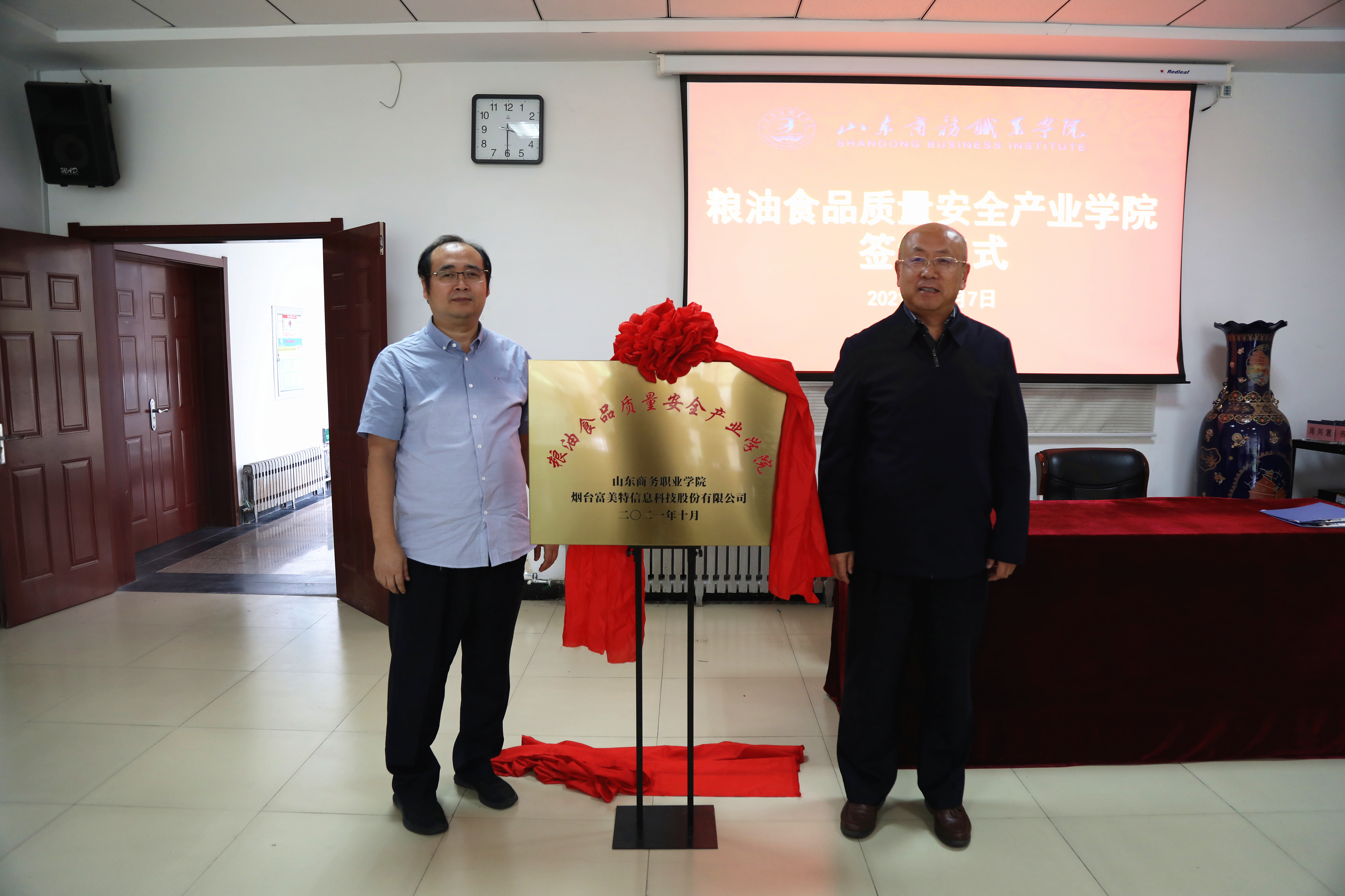 本站讯 为持续提升产教融合、校企合作水平,更好地促进学校与企业发展,10月7日下午,粮油食品学院与烟台富美特信息科技股份有限公司(食品伙伴网)在办公楼会议室举行粮油食品质量安全产业学院签约仪式及揭牌仪式。烟台富美特信息科技股份有限公司董事长李远钊、学校副校长陶传蔚、校企合作与就业工作处、粮油食品学院领导及相关负责人出席签约仪式。