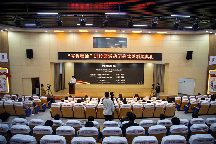本站讯 11月4日下午,“齐鲁粮油”进校园活动闭幕式暨颁奖典礼在我校党性教育基地举行。学校党委副书记刘艳蔚、各二级学院党总支书记出席活动,学生代表参加活动。