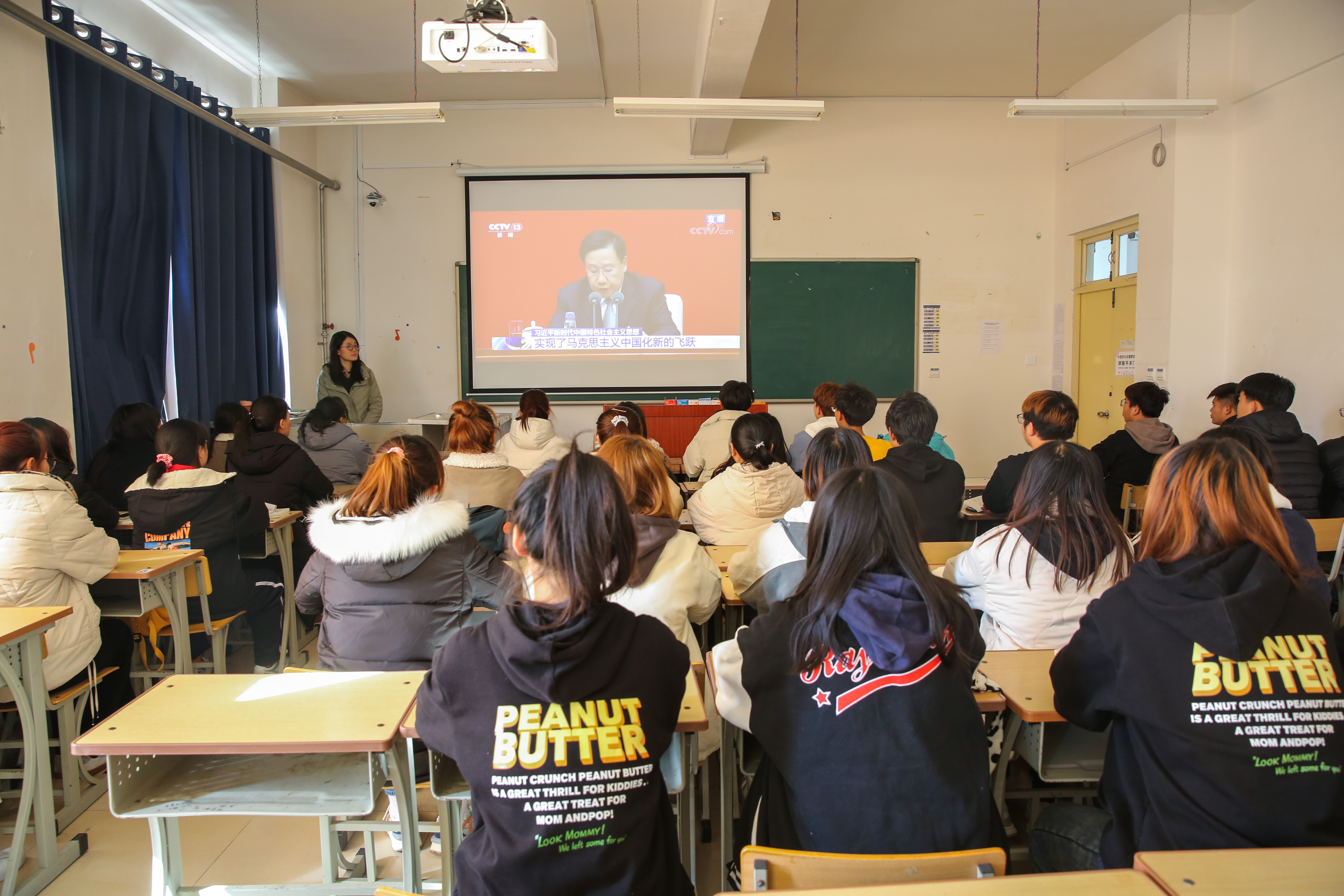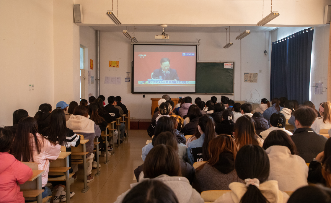 本站讯 11月12日上午10时,中共中央在北京举行新闻发布会,介绍党的十九届六中全会精神,并答记者问。学校党委采取理论学习中心组形式集体观看,各级党组织及各部门以“三会一课”、主题党日、课堂教学为载体,组织党员干部、师生群众收看新闻发布会现场直播,学习全会公报内容,认真领会本次全会精神。