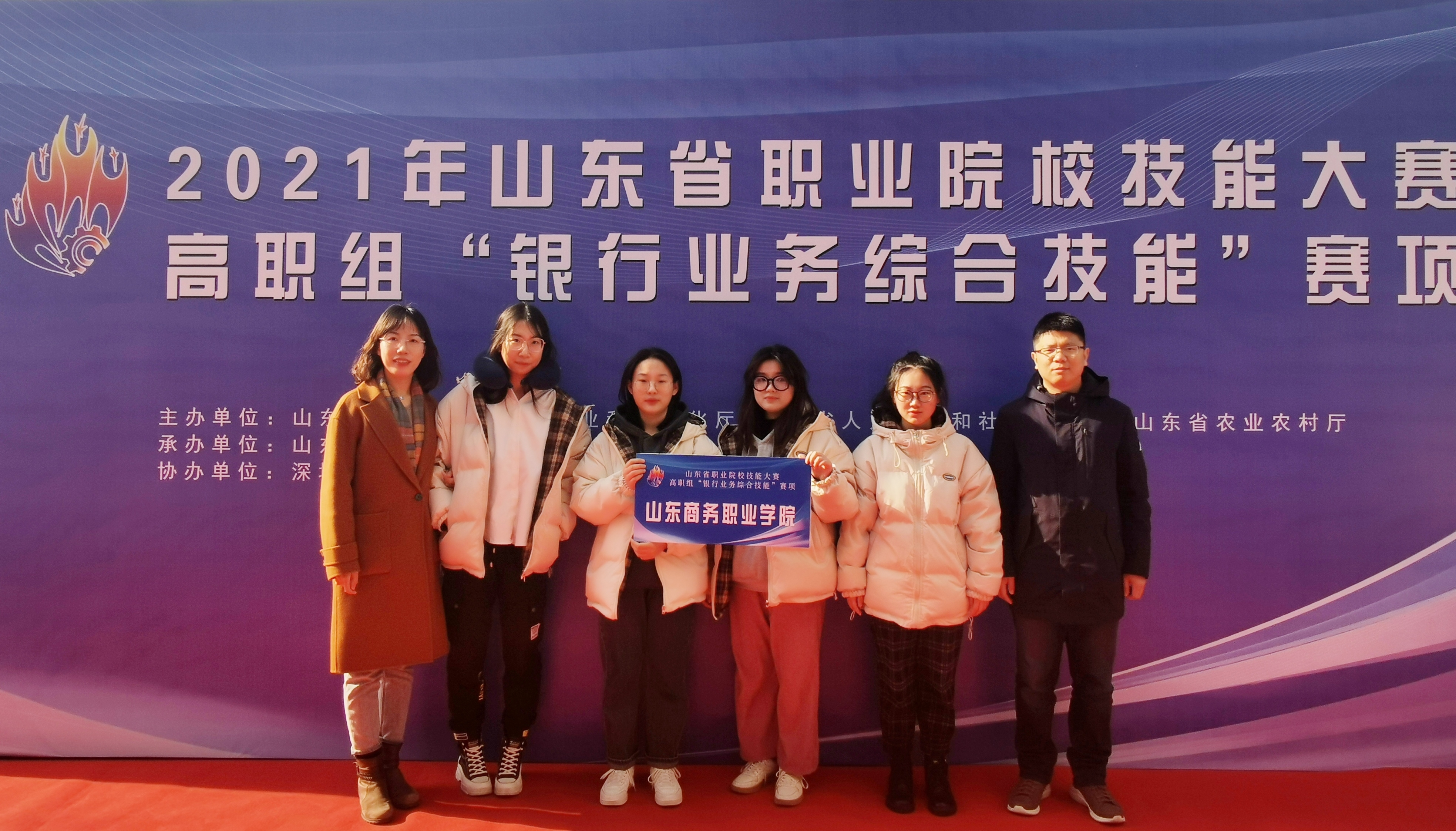 本站讯 12月19日-21日,2021年山东省职业院校技能大赛银行业务综合技能赛项(高职组)在山东外贸职业学院举行。经过两天的激烈角逐,会计金融学院以张岗、孙博、于砚淼为指导教师,郑景芮、刘欣睿、丁文科、唐禹梦作为参赛选手的山东商务职业学院代表队勇夺一等奖。