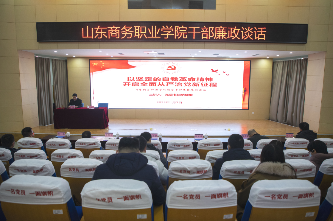 本站讯 为推进学校全面从严治党向纵深发展,巩固“学党史、悟思想、办实事、开新局”的成果,1月7日,学校在党性教育基地开展领导干部集体廉政谈话,党委书记耿建敏出席并讲话,学校副科级及以上干部参加会议。