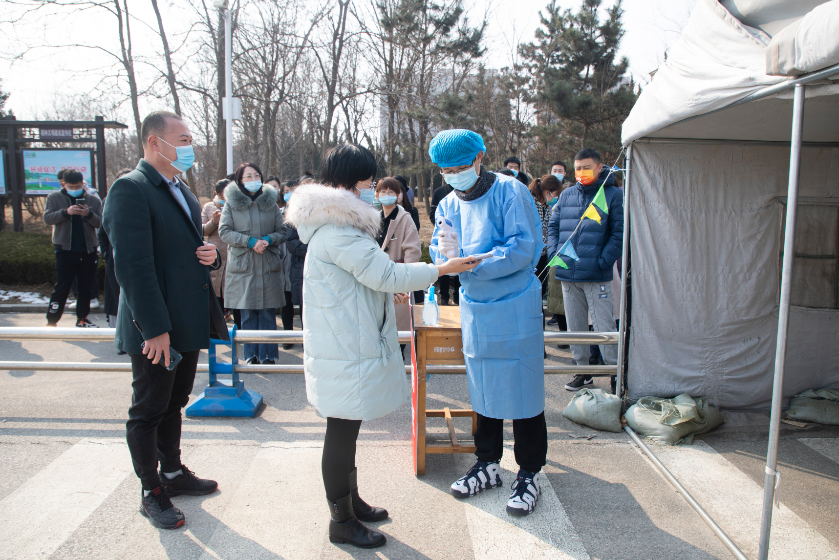 演练过程中,参演人员模拟了发现学生异常情况时的应急处置程序,认真做好入校审核、体温测量、症状检测、近期旅居史和接触史问询和排查、信息登记报告、留观转诊、环境消毒、应急隔离等各项应急处置措施。