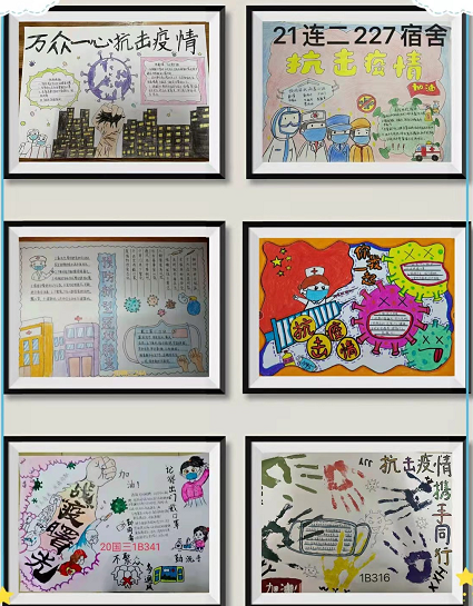 封校期间,经济管理学院同学们利用课余时间,纷纷拿起画笔,认真钻研,创作出各类抗疫作品。一幅幅海报、手绘、手抄报寄托着同学们的感恩之心,表现了同学们积极配合抗疫工作的自觉,更饱含了对抗疫必胜的坚定信心。活动以宿舍为单位进行作品提交,共收到了来自39个班级的247幅作品。21级连锁经营管理2班李文慧同学谈及创作海报的初衷时说道:“疫情防控期间,我们在学校不能为社会做些什么。刚好有这个活动,我们就整个宿舍一起创作了一幅手抄报,把它贴在宿舍门旁,也希望尽自己一份绵薄力量,传递我们一定能战胜疫情的坚定信念!”