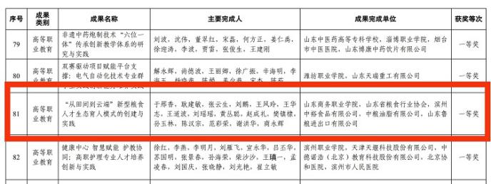 本站讯 近日,山东省教育厅公布了2022年省教学成果奖(职业教育类)获奖名单,我校荣获职业教育教学成果奖4项,其中一等奖3项、二等奖1项。