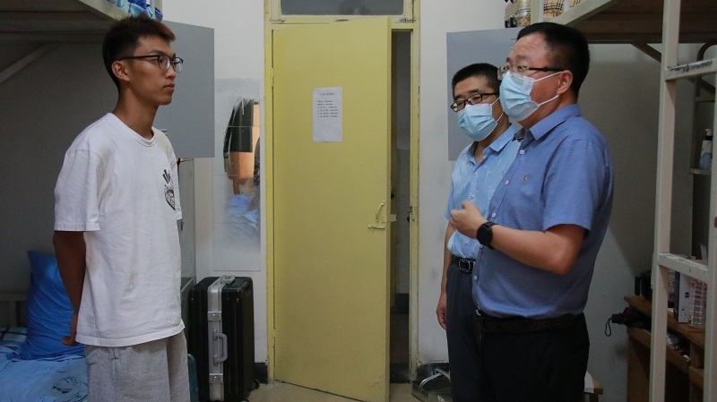 8月31日下午,校领导张越与建筑工程学院党员教师一起走访了贵和苑新生宿舍,与学生亲切交谈,为学生送去暖心关怀:“从哪里过来?”“安顿好了记得给家里报个平安”……轻松的话语迅速拉近了彼此间的距离。张越仔细询问了新生环境适应情况并给出建议,叮嘱学生要做好疫情常态化防控工作,更快更好地开启大学生活。来自学校领导和老师的热情关怀,很快消除了新生们初来乍到的陌生感。