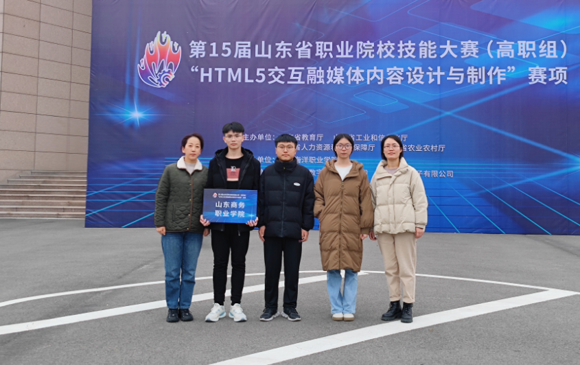 本站讯 11月21日,山东省职业院校技能大赛(高职组)“HTML5交互融媒体内容设计与制作”赛项在威海海洋职业学院举行。我校信息工程学院计算机应用技术专业赵梓茗、乔佳乐、李柏乐三名学生组成的参赛团队,在刘立静、曲心慧两位老师的指导下,荣获省赛一等奖第二名的好成绩。