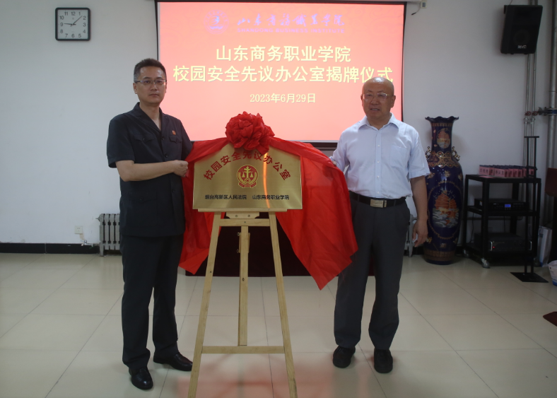 学校副校长陶传蔚与高新区人民法院党组成员、综合审判庭庭长王海林共同为校园安全先议办公室揭牌。学校安全保卫处、学生工作处(团委)、法务办公室、建筑工程学院等相关部门单位负责人参加揭牌仪式。