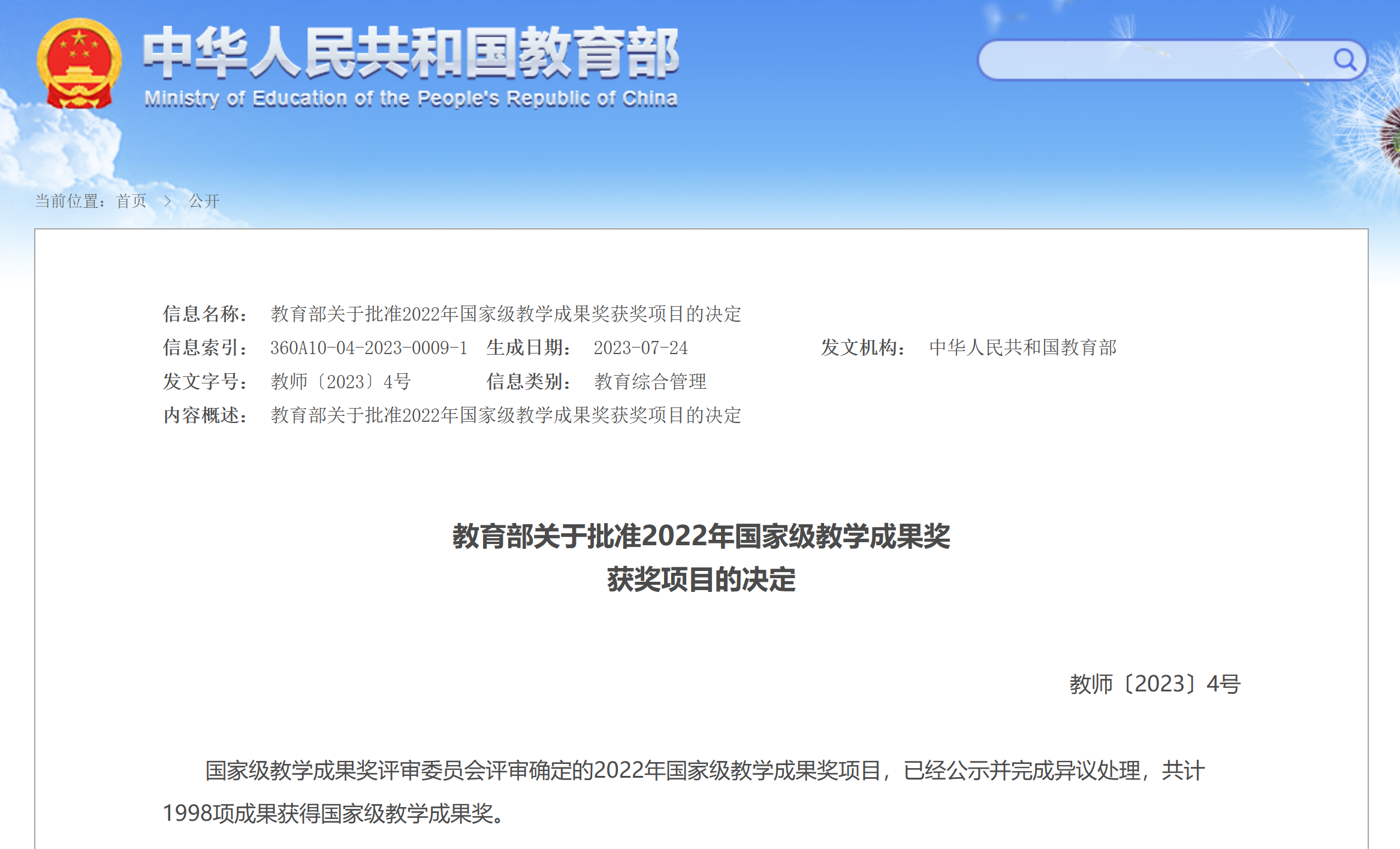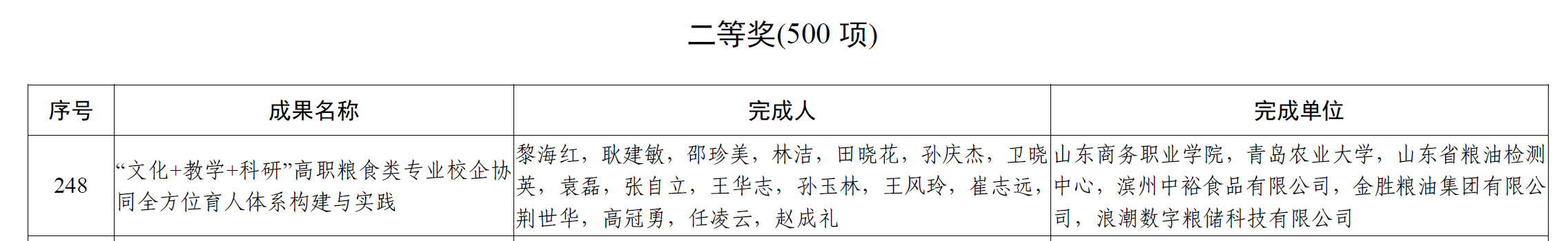 本站讯 近日,教育部发布《关于批准2022年国家级教学成果奖获奖项目的决定》(教师〔2023〕4号),公布了2022年国家级教学成果奖评选结果。我校教学成果《“文化+教学+科研”高职粮食类专业校企协同全方位育人体系构建与实践》荣获“职业教育国家级教学成果”二等奖,实现了我校国家级教学成果奖新突破。