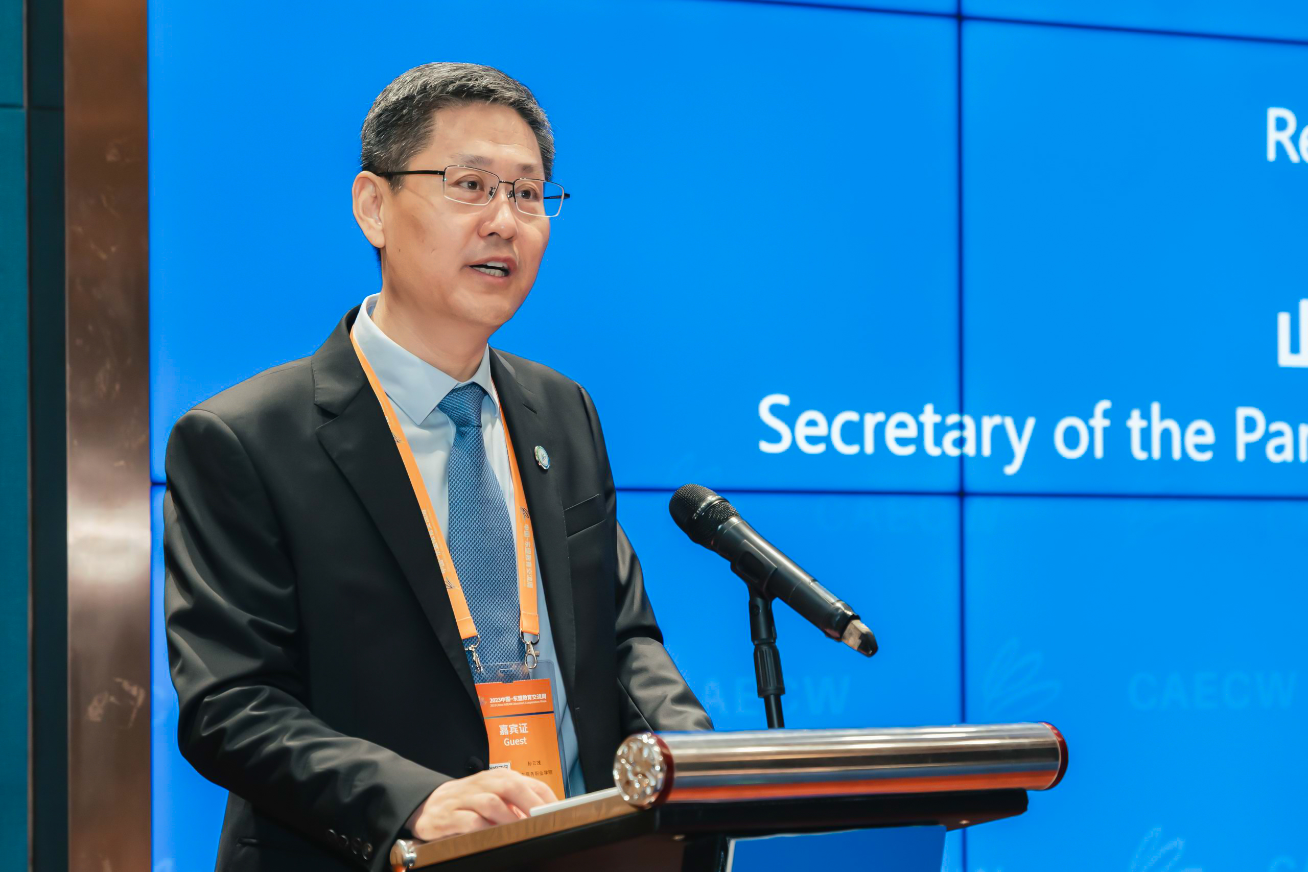 中国-东盟教育交流周组委会执行秘书长刘宝利,老挝乌多姆塞省教育厅厅长宋桑·苏劈莱,老挝苏萨卡工学院校长康巴松,山东商务职业学院党委书记孙云茂,广东职业技术学院校长吴教育,贵州建设职业技术学院党委副书记、校长王昌辉等分别在开幕式致辞。山东商务职业学院党委委员、副校长张云生主持开幕式。