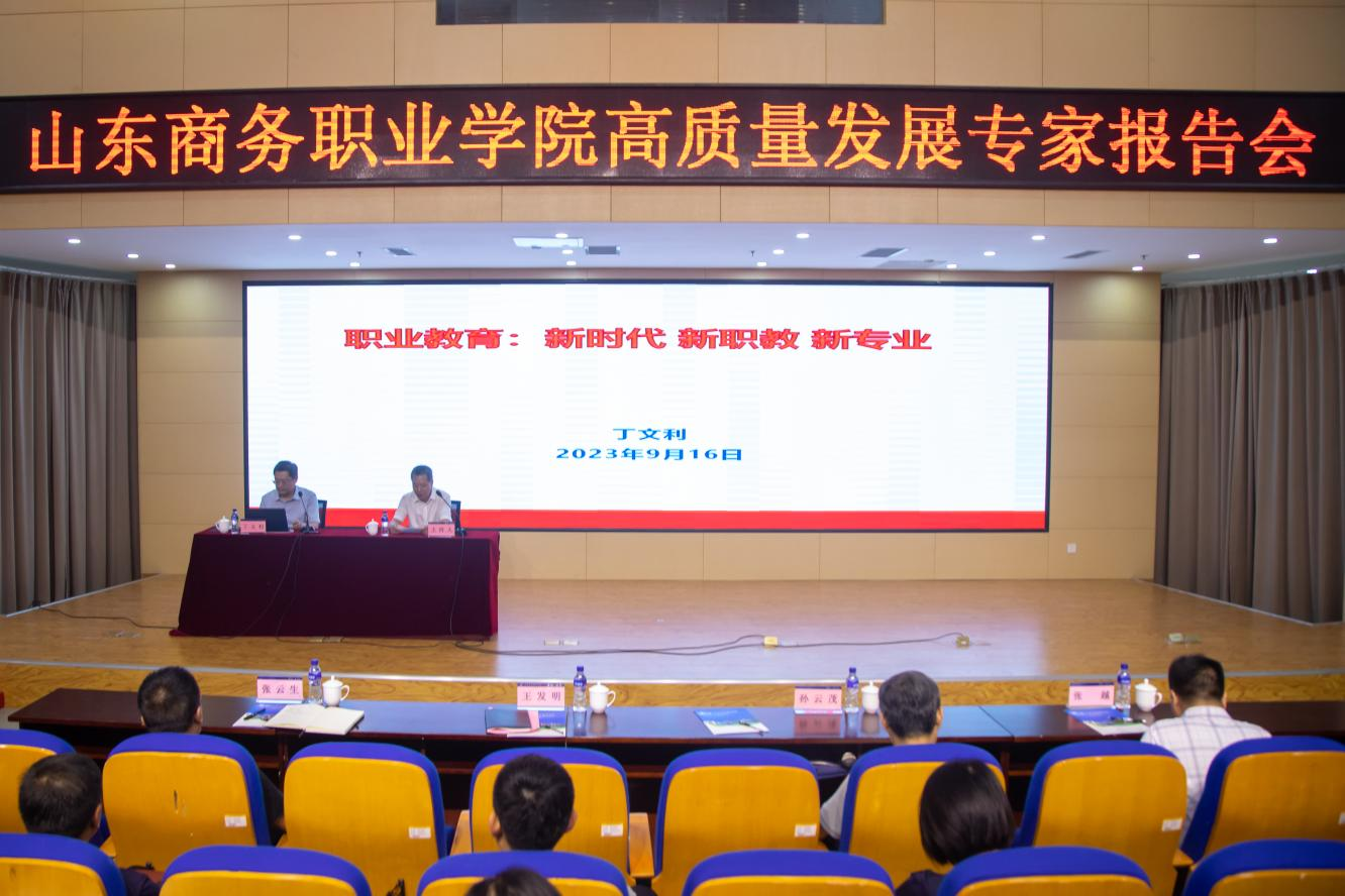 本站讯 9月16日下午,我校在党性教育基地举行高质量发展专家报告会,山东信息职业技术学院院长丁文利教授应邀作报告。学校领导、副科级以上干部,各专业带头人、公共课负责人,全体辅导员等200余人参加会议。学校党委副书记、校长王发明主持会议。
