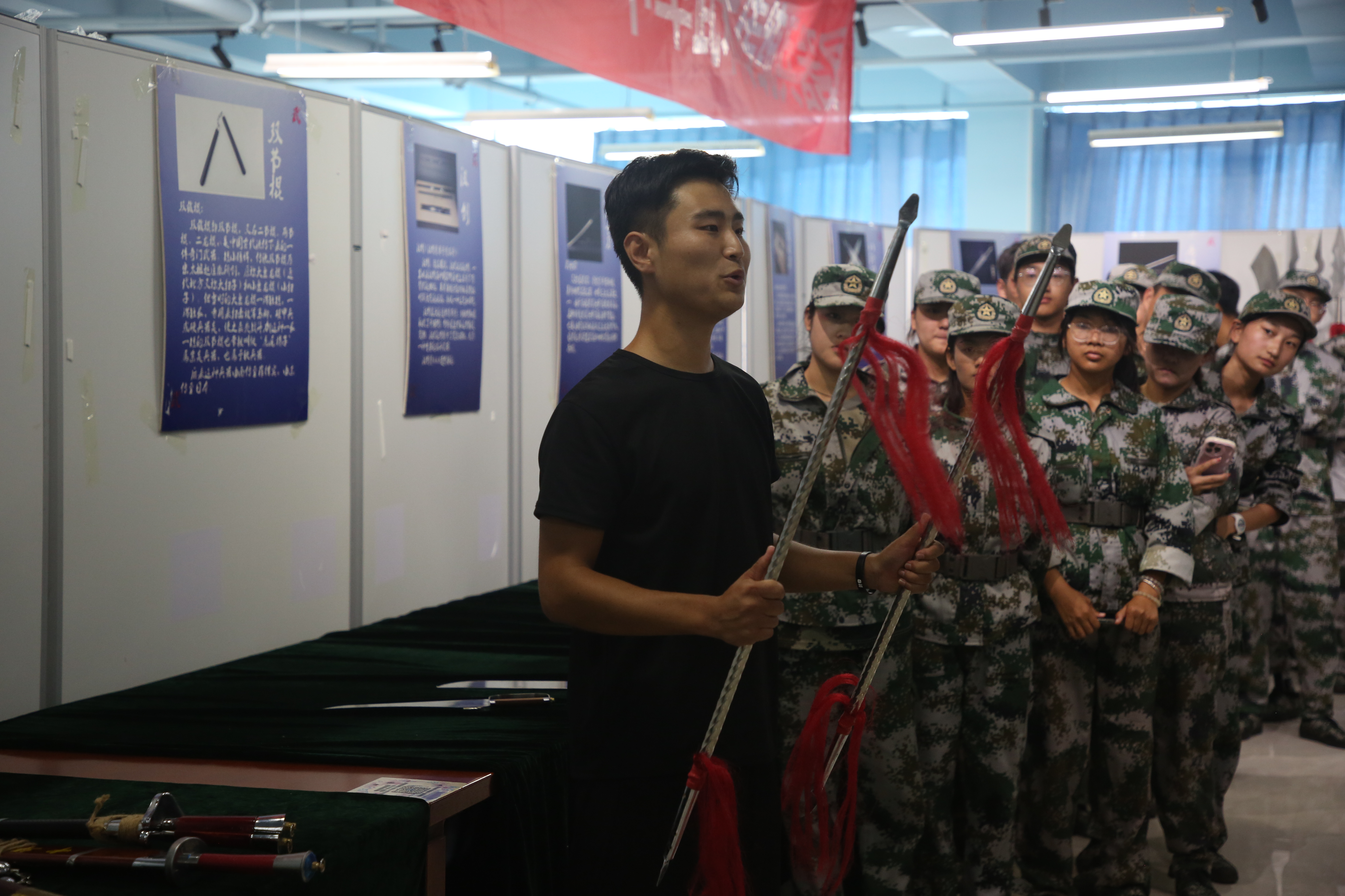 活动期间,烟台武院武术联合推广中心的教练们对展出的兵器依次进行了现场演示,展示了这些古代传统兵器在对战中的常用招式、手法身法以及战斗的优劣势,并邀请军训新生现场体验。校太极拳社、武术爱好者进行了太极拳展示,一招一式尽显功底,一拳一腿毕露锋芒。新入学的大一新生也跃跃欲试亮绝活,现场“耍大刀”。强军思想先锋连、高新区武术协会也分别现场展演武术绝技,让大学生们感受到了中华传统武术和兵器的魅力,体味一代代商务人的校园武术情怀。