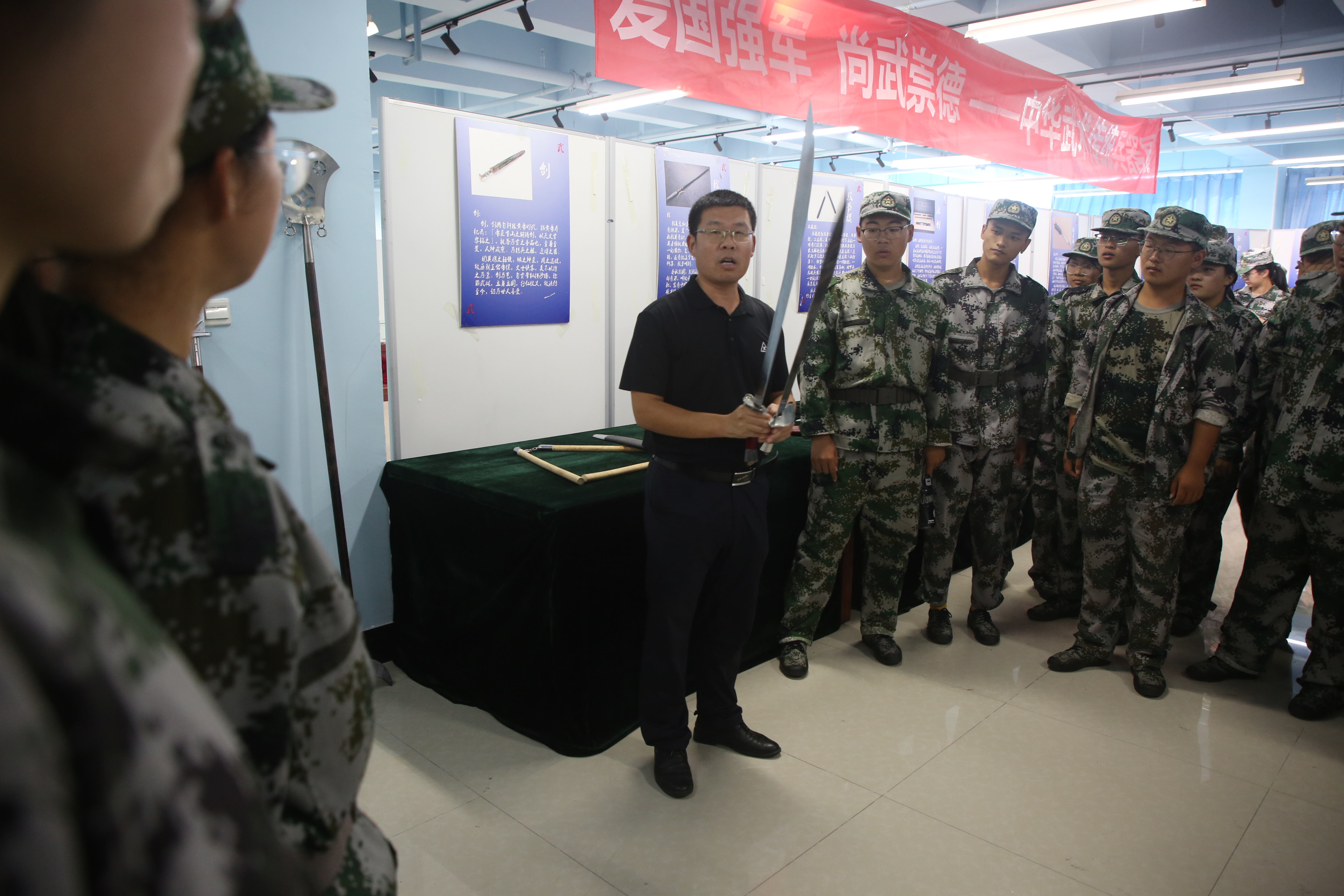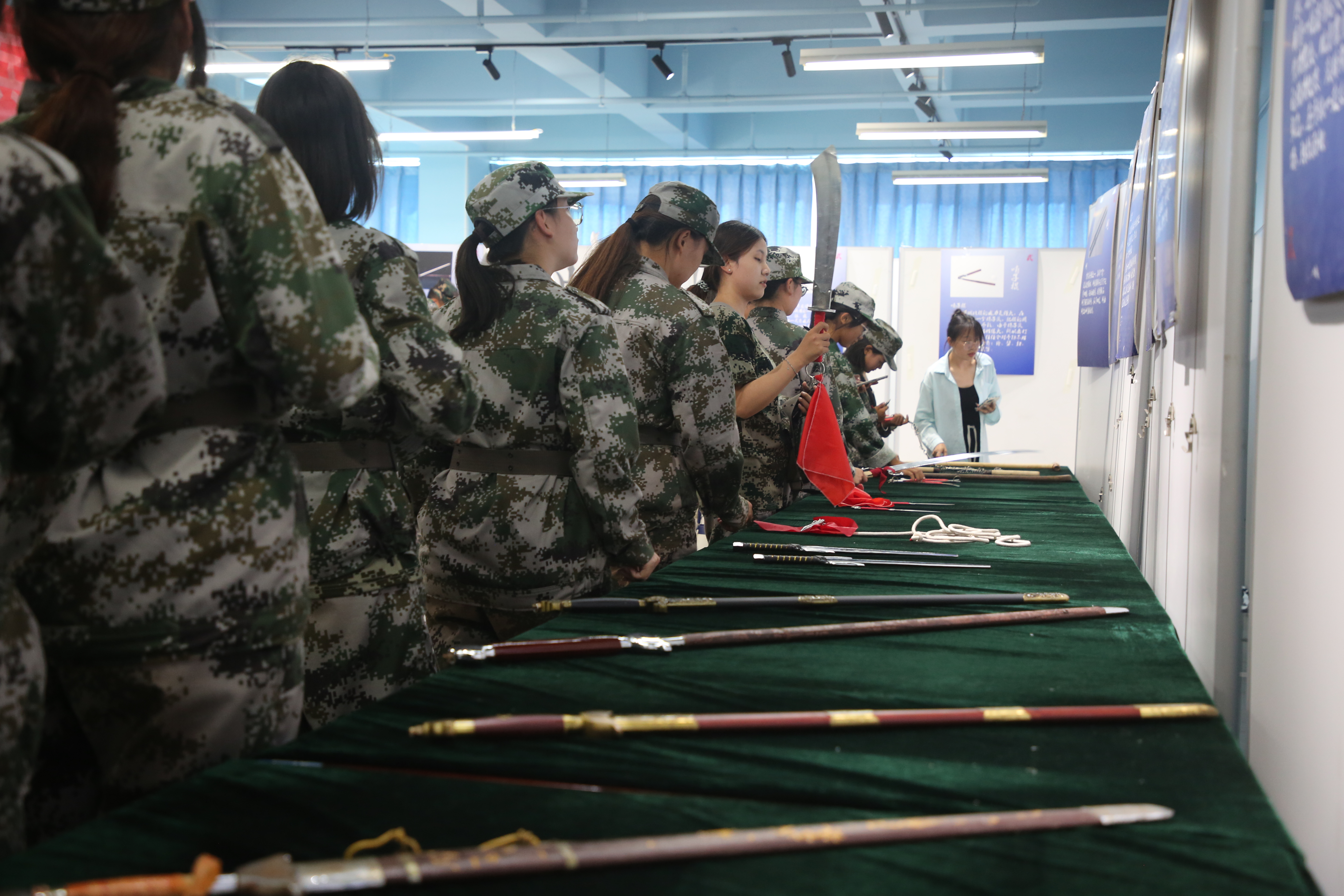 本站讯 9月是“全民国防教育月”,主题为“踔厉奋发强国防 勇毅前行向复兴”。为弘扬国防教育精神,传承国防教育理念,厚植家国情怀,增强广大青年学子履行国防义务的意识,展示当代大学生的青春风采。学校图书馆与烟台华夏文化促进会联合举办“爱国强军 尚武崇德”中华传统武术兵器展。