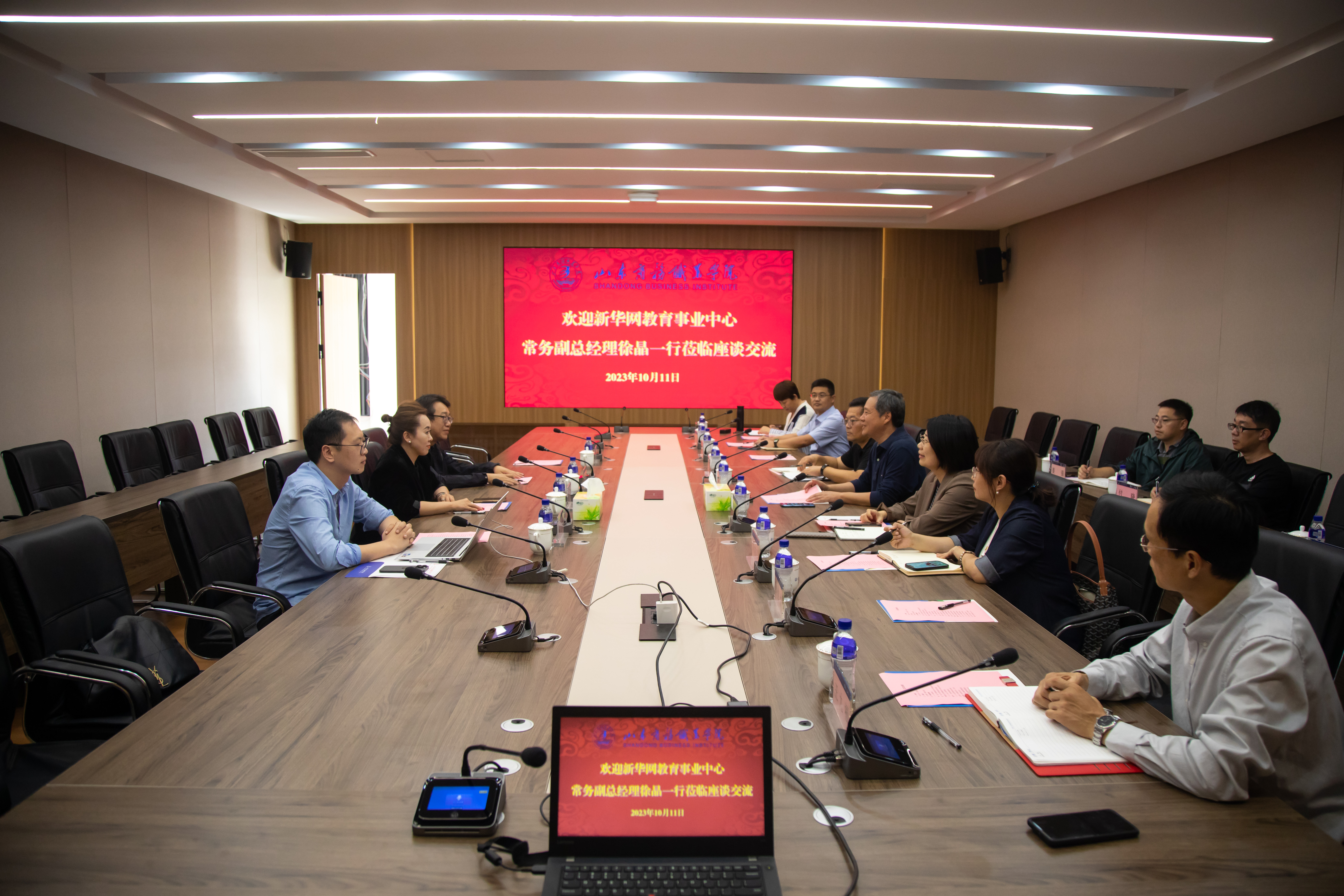 本站讯 10月11日下午,新华网教育事业中心常务副总经理徐晶、运营总监赵峰、教学服务中心柯金涛一行3人到校座谈交流,交流会以“课程育人、思政铸魂”为主题,会议由我校党委副书记、校长王发明主持。教务处、教师发展中心、马克思主义学院、各二级学院负责同志参加会议。