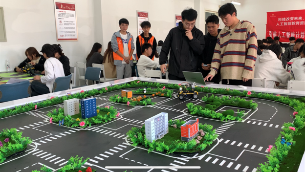 完成车辆组装后,授课教师为学生们讲解如何通过编写代码将指令输入单片机以操控车辆运行。最终,在各组同学的共同努力下,所有同学均成功地实现车辆的无人驾驶运行,完成了无人驾驶实训课程。同学们通过动手实践,不仅体验到了成功的喜悦,而且更加深入地理解和认识了人工智能应用。