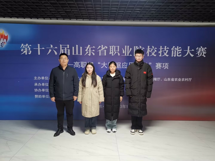 本站讯 12月15日至17日,第十六届山东省职业院校技能大赛(高职组)“大数据应用开发”赛项在济宁职业技术学院举行。此赛项首届“师生同赛”,由我校信息工程学院庄福宝老师和2022级大数据技术专业胡箫、田宏杰、王雨桐3名同学组成的参赛队伍,获得省赛二等奖。