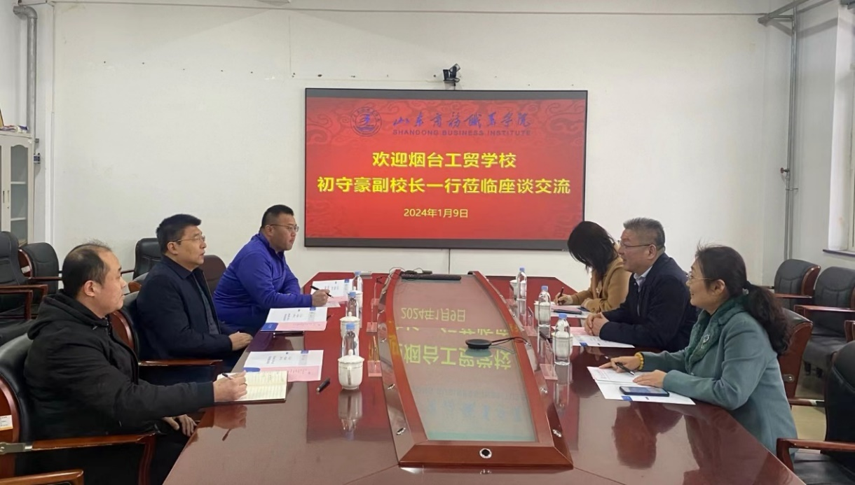 本站讯 1月9日上午,烟台工贸学校副校长初守豪一行来我校洽谈三二连读合作事宜,副校长张云生出席座谈交流。