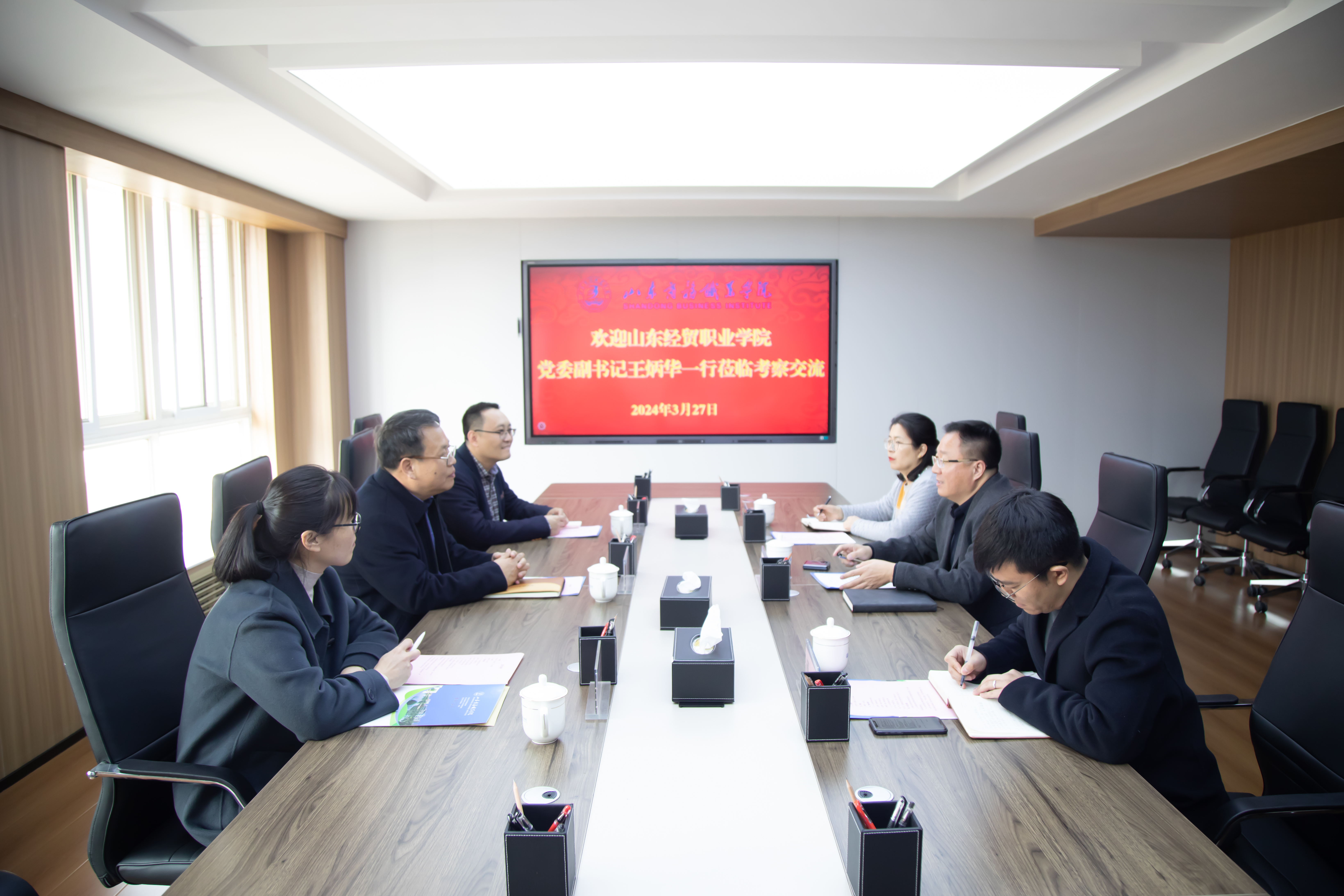 本站讯 3月27日,山东经贸职业学院党委副书记王炳华一行来我校调研。学校党委副书记张越,党委委员、组织人事处处长邵军参加座谈交流。