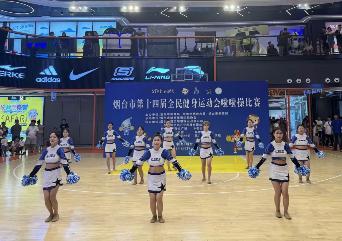 本站讯 6月29日,烟台市第十四届全民健身运动会啦啦操比赛在烟台市芝罘区吾悦广场举行,本次比赛分学校组、社会俱乐部组、职工组三个组别,设置啦啦操、健美操、街舞、排舞等四个比赛大项,我校共派出10名运动员参加了大学丙组的比赛,经过激烈角逐,最终获得了大学丙组小集体校园啦啦操示范动作(第三套)花球一等奖的好成绩。