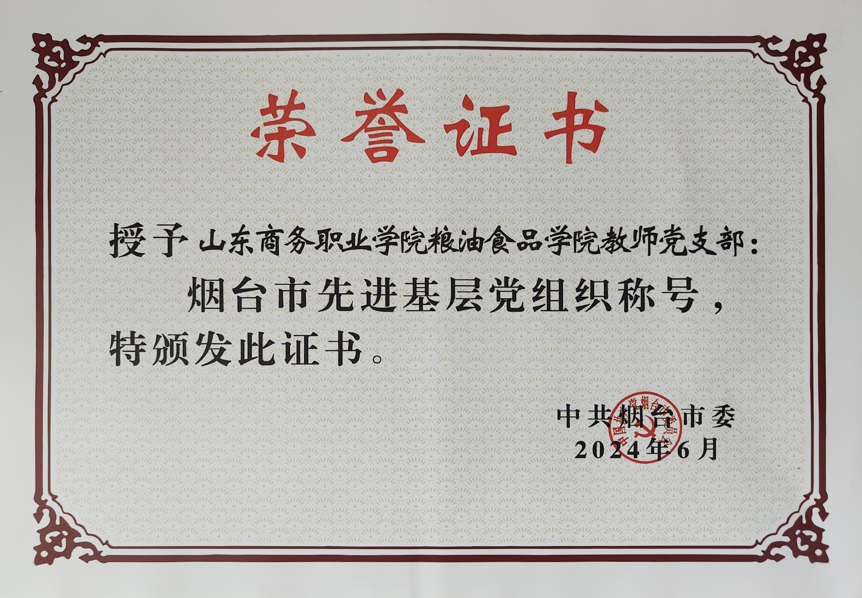 本站讯 近日,中共烟台市委印发《关于表彰烟台市优秀共产党员、优秀党务工作者和先进基层党组织的决定》,我校粮油食品学院教师党支部荣获“烟台市先进基层党组织”称号。