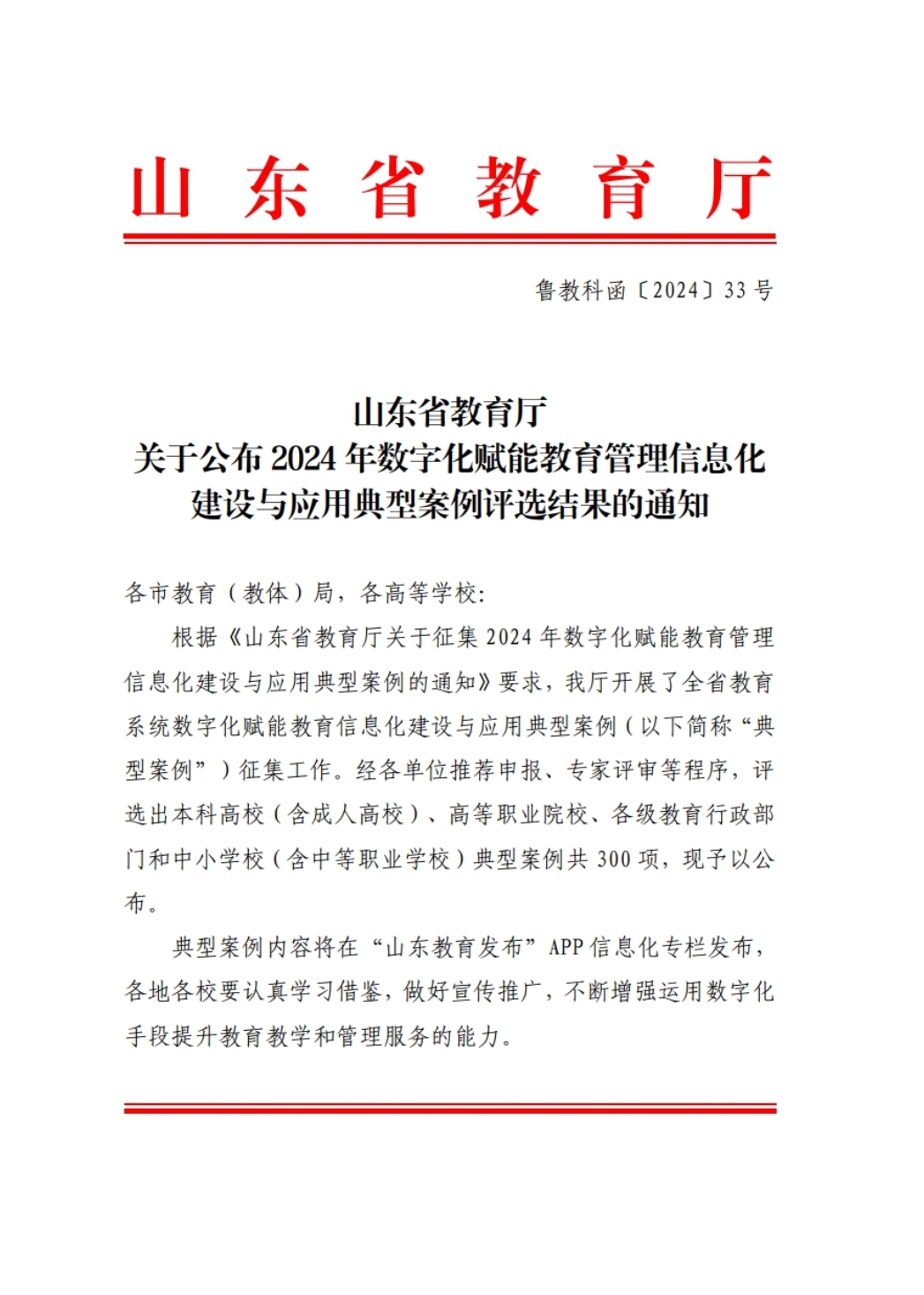 我校获批山东省2024年数字化赋能教育管理信息化建设与应用典型案例