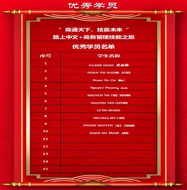 教师代表侯伟玲为学员们送上寄语,希望学员们能够借此宝贵契机,积极投身与中国的友好事业,成为增进两国友谊的使者和促进合作的桥梁。期待学员们日后有机会来到中国、烟台和山东商务职业学院,继续深入学习交流。班主任王翔在仪式上向大家介绍了本次项目实施与完成情况并进行了汇报。本次平台注册学员共计116名,第一批完成平台课程任务并获得结业证书的学员共72名,其中10名学员被评选为“优秀学员”。同时,平台调查问卷共收到反馈意见102条,好评率达到99.6%,其中对于教师教学能力、课程种类等好评率均达到100%。