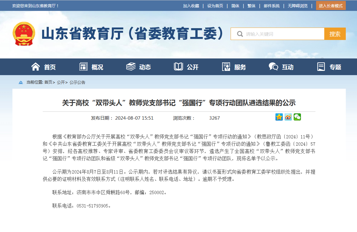 我校党支部入选全国高校“双带头人”教师党支部书记“强国行”专项行动团队