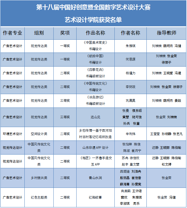 本站讯 2024年第18届中国好创意暨全国数字艺术设计大赛全国总决赛传来喜讯,我校艺术设计学院师生凭借独特的创意构思在众多参赛作品中脱颖而出,获一等奖2项、二等奖7项、三等奖2项,其中,作品《船舶中国》书籍设计与《中国美术简史》书籍设计荣获视觉传达类一等奖。