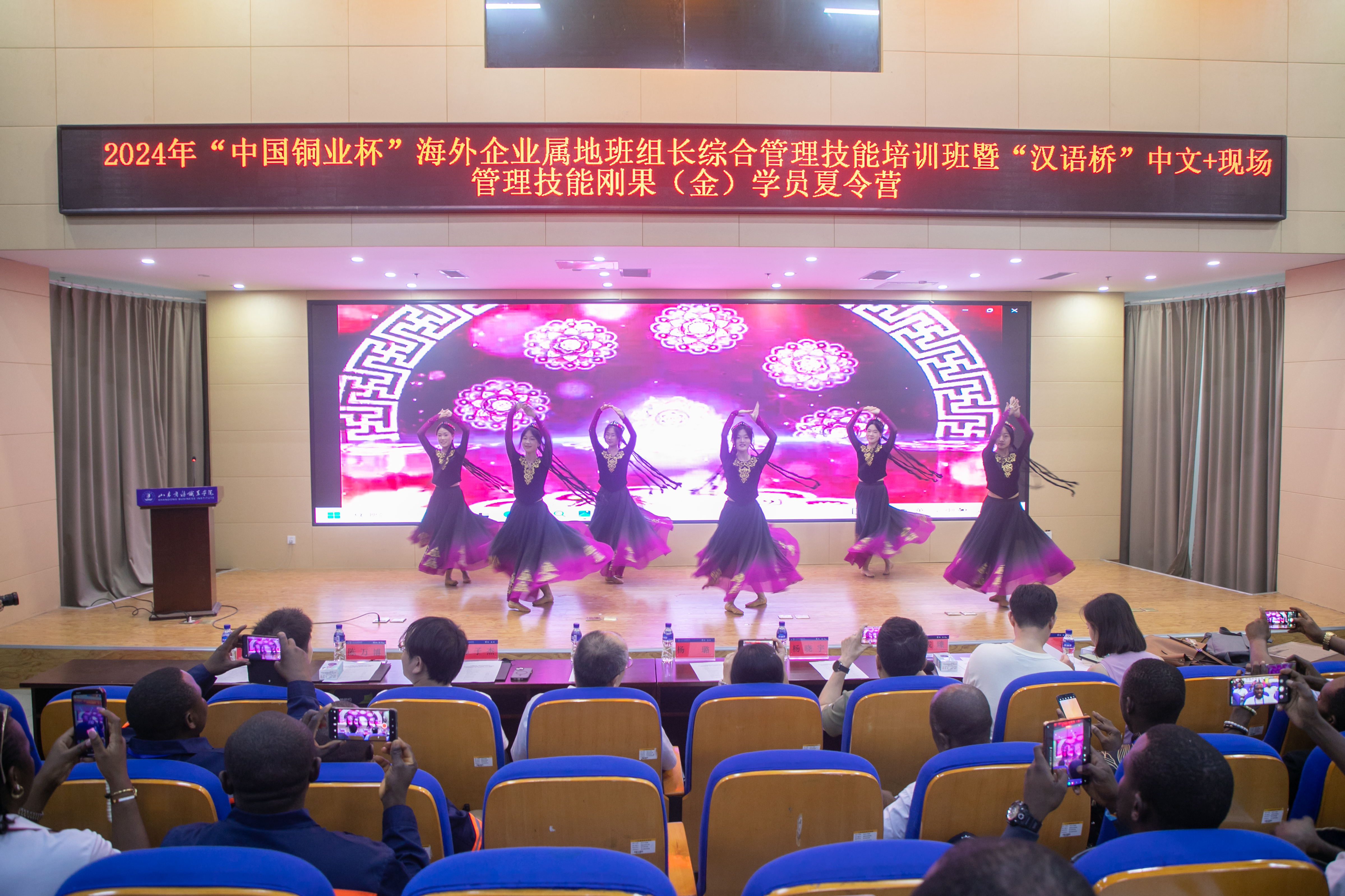 一场精彩的开场舞拉开了结营仪式的序幕,表演充满了对中非友谊的赞美和期待,现场气氛欢快而热烈。国际教育学院院长刘景光在致辞中表示,此次夏令营不仅是一次语言与技能的盛宴,更是一场中非文化交融、友谊与合作的嘉年华,学校将始终秉持开放包容的办学理念,愿以汉语为桥、会四海之友,积极扩大对外人文、教育、青年、民间等友好交流,更好推动文明互学互鉴、人民相知相亲。