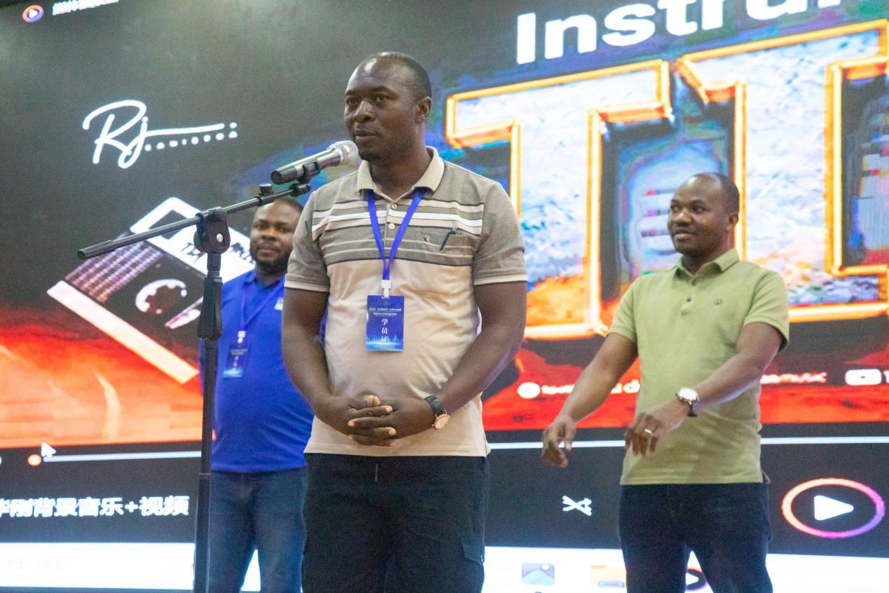 在学员风采展示环节,各代表队学员们纷纷上台分享自己的学习收获和感言。学员代表Amara Camara对各方单位、学院、老师们无微不至的照顾表达了诚挚的谢意。他表示这些天在商务学习、生活、交流,已经完全融入学校的氛围,授课老师们高质量的课程设置和高水平的教学能力,让自己的中文水平得到快速的提升。学员代表Nicolas Leno在惊叹于中国发展成就的同时,也为自己在共建“一带一路”的历史机遇中加入中国企业而感到幸运和自豪,表示将努力提升个人职业技能和管理水平,积极投入所在国的建设发展中,实现个人与企业、国家的共同发展。之后,中铝几内亚和北方矿业科米卡代表队为大家带来了非洲传统舞蹈表演,华刚矿业和北方矿业拉米卡代表队也带来了热情洋溢的歌曲表演,现场气氛欢快而热烈,表演充满了对中非友谊的赞美和期待。