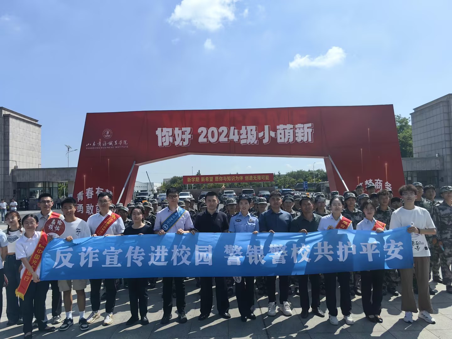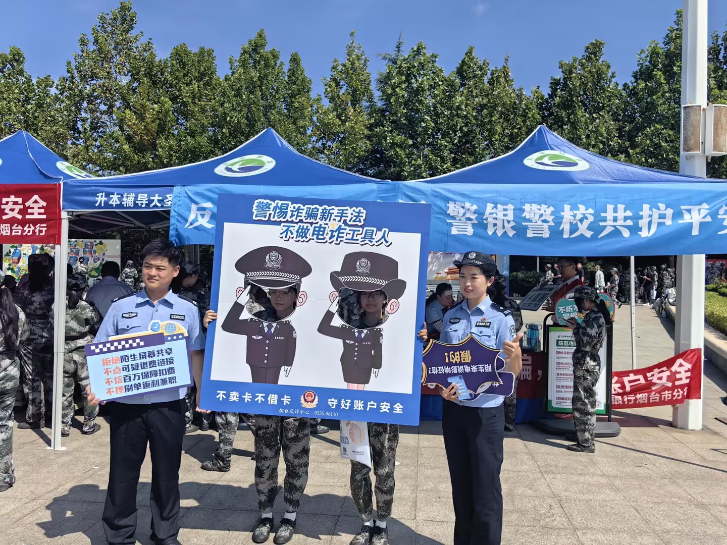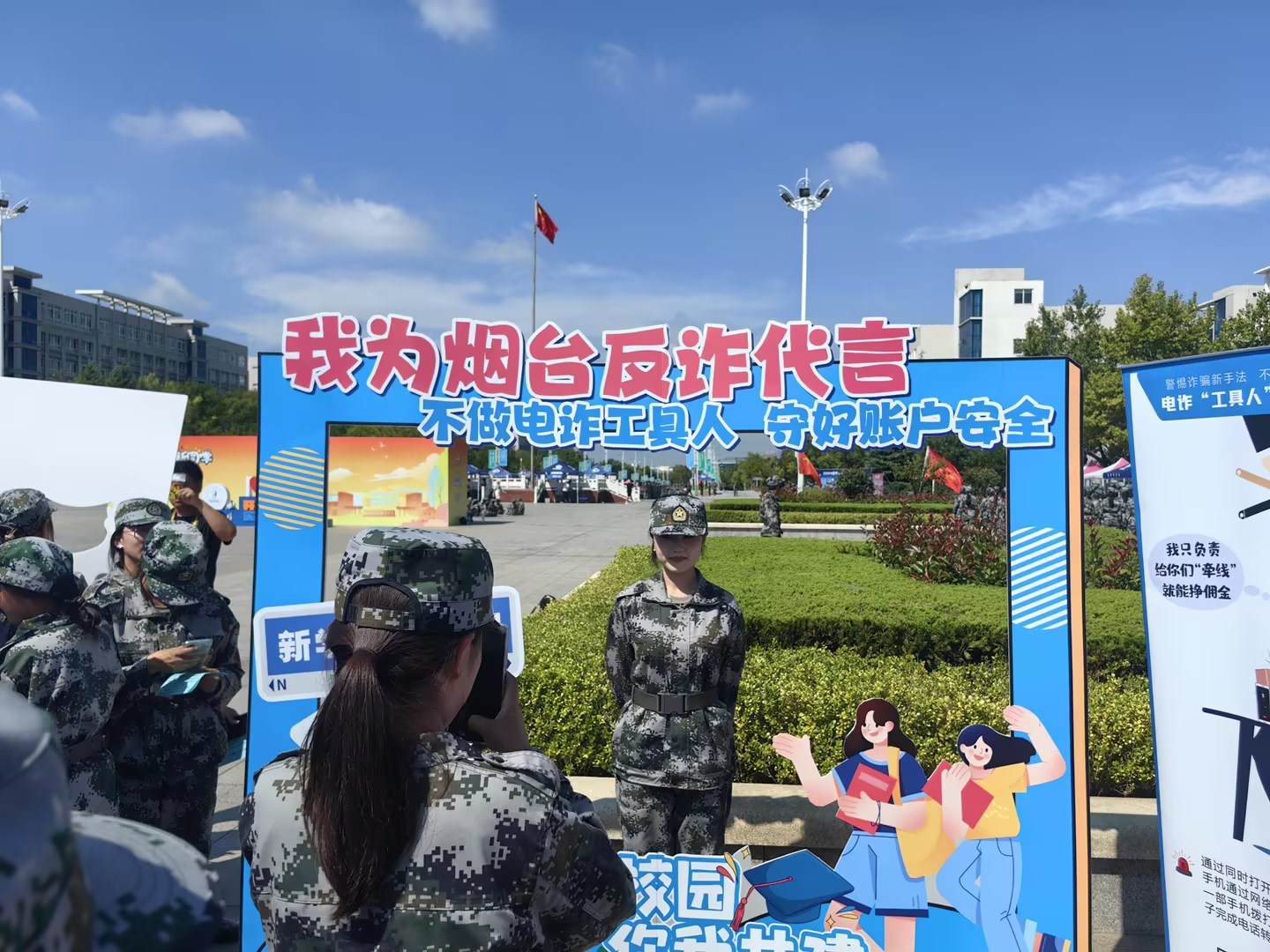 本站讯 为加大校园反诈宣传力度,提高我校新生识诈、防诈、反诈意识,积极创建“无诈校园”,营造全民反诈的浓厚氛围。9月10日上午,我校联系烟台市公安局反诈中心、高新区公安分局刑侦大队、中国光大银行、恒丰银行、招商银行等多家银行机构到校,在学校中心大道开展反诈宣传活动。