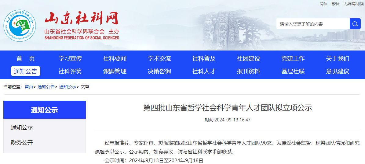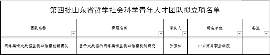 本站讯 近日,山东省社科联公布第四批山东省哲学社会科学青年人才团队立项名单,我校副校长孙玉林牵头申报的《网络舆情大数据监测与治理创新团队》获批立项,此次入选体现了学校持续推动科技创新团队建设与青年人才培育融合发展的工作成效,实现了我校在社会科学团队建设工作中的重要突破。