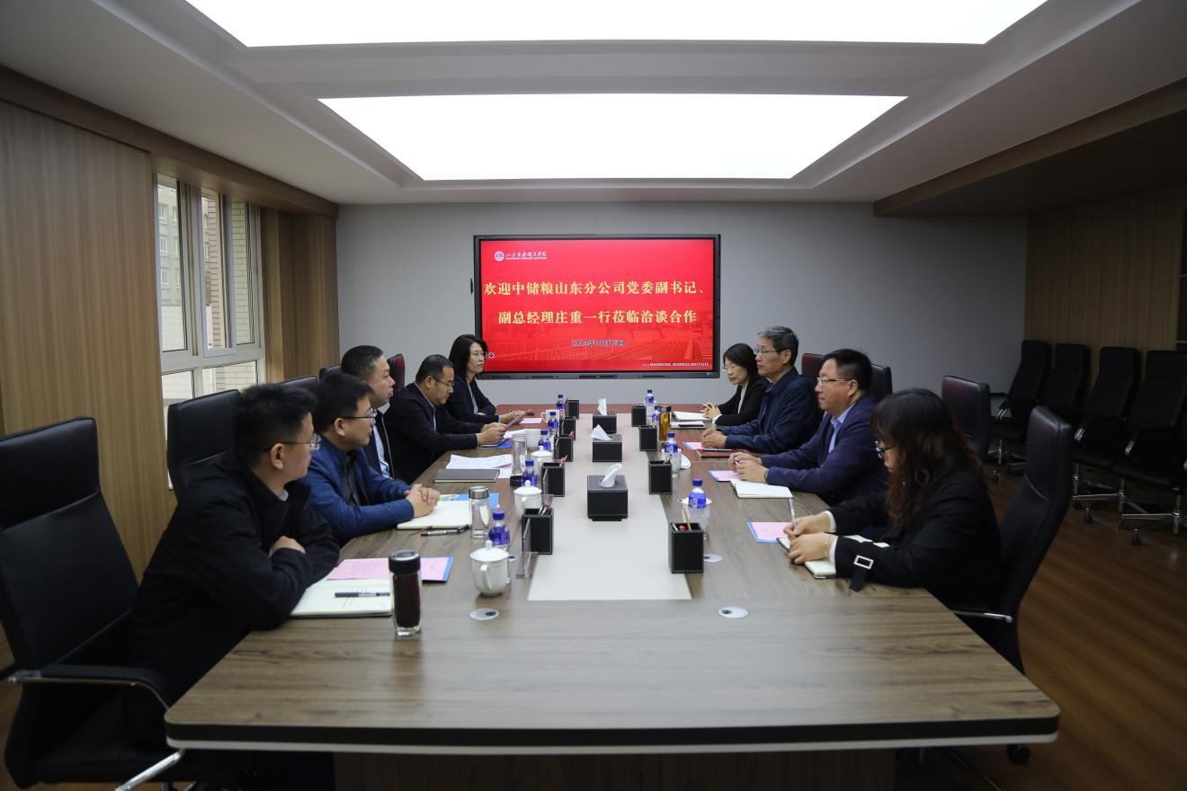 本站讯 10月18日,中国储备粮管理集团有限公司山东分公司党委副书记庄重一行来到我校,就产教融合共同体合作事宜进行洽谈。我校党委书记孙云茂,党委副书记张越,副校长于邢香等人出席会议。