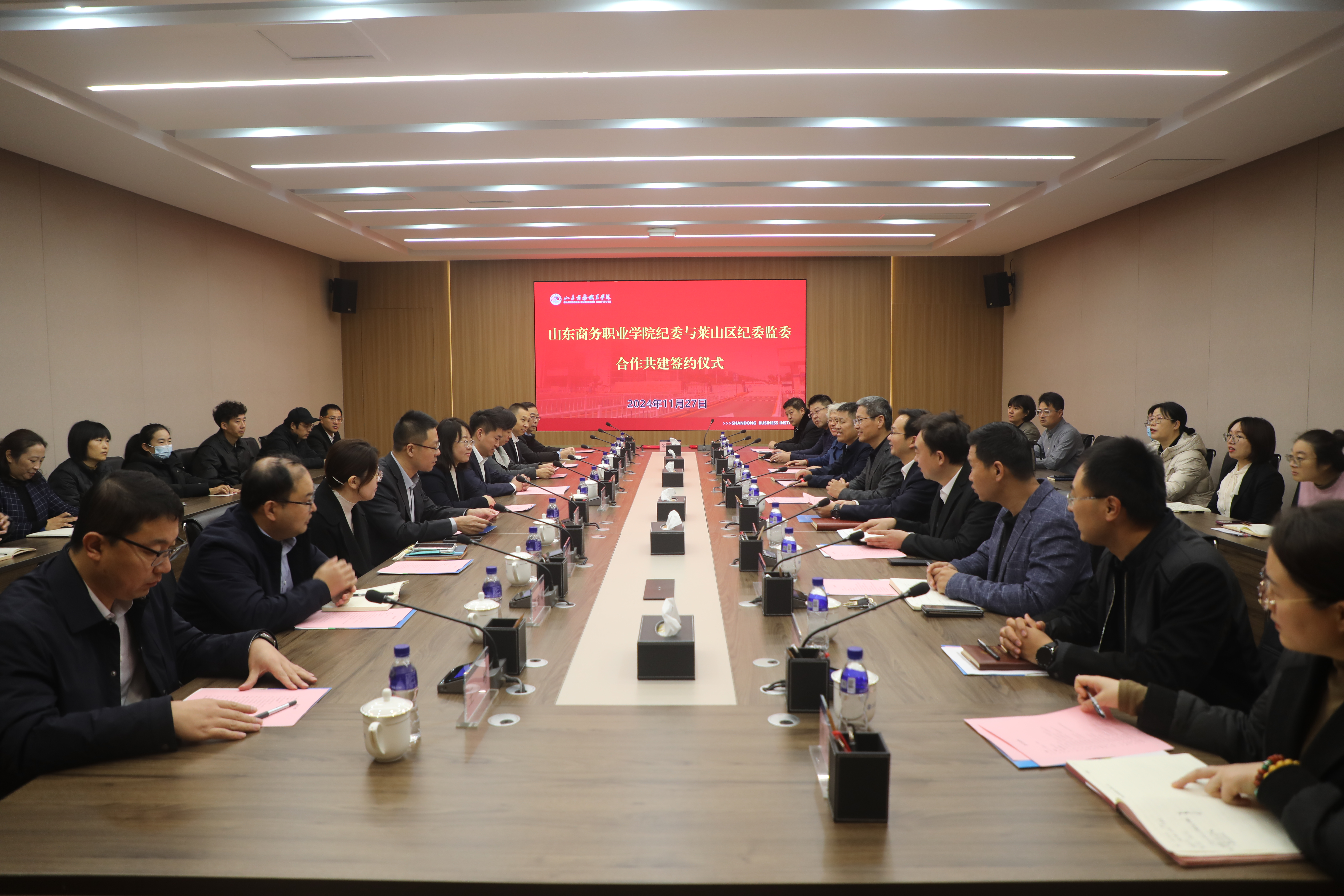 会上,学校纪委委员、文化旅游学院党总支书记宫国学与莱山区纪委分管日常工作的副书记、区监委副主任刘杰签订合作协议。