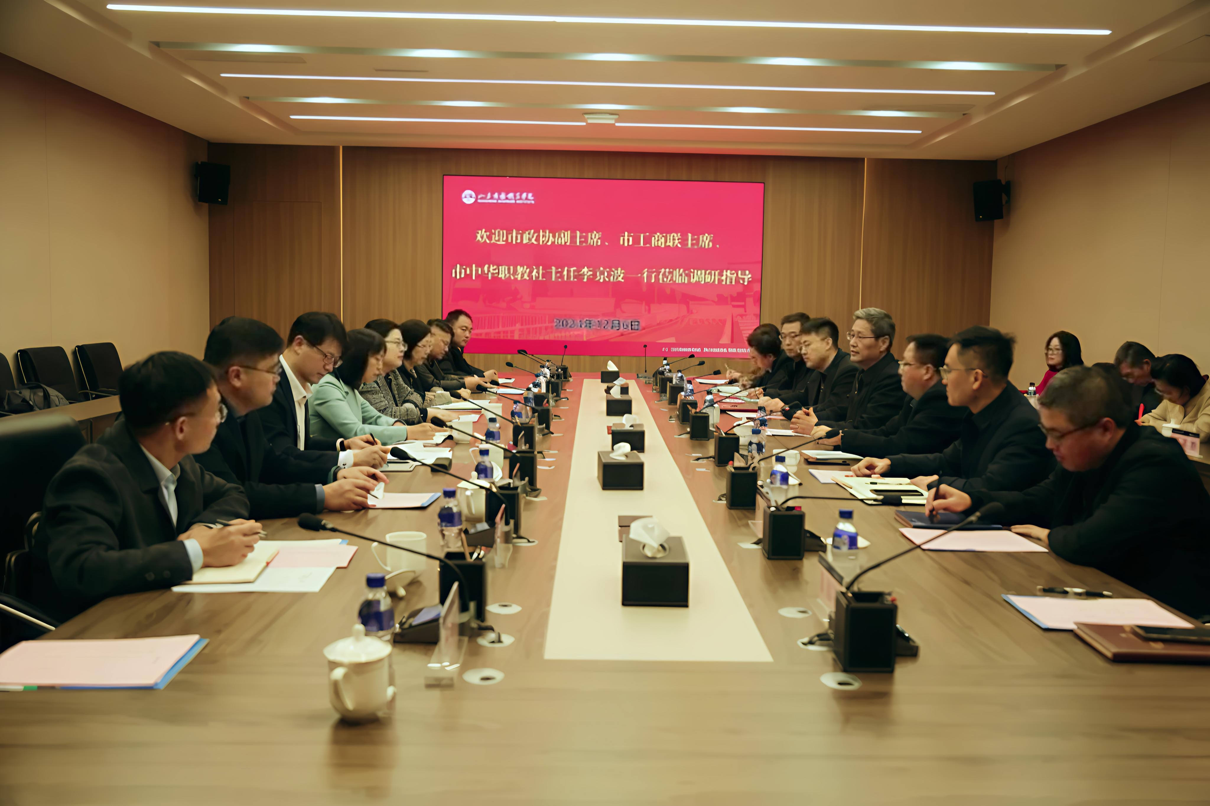 本站讯 12月6日,烟台市中华职业教育社调研组来我校调研。市政协副主席、市工商联主席、市中华职业教育社主任李京波,市中华职教社部分领导班子成员和社员代表,高新区管委、市工商联相关负责同志参加调研,我校党委书记孙云茂,党委副书记张越,党委委员、副校长孙玉林,党委委员、宣传统战部部长孙芹宝及相关部门负责人,学校部分市中华职教社社员陪同调研。