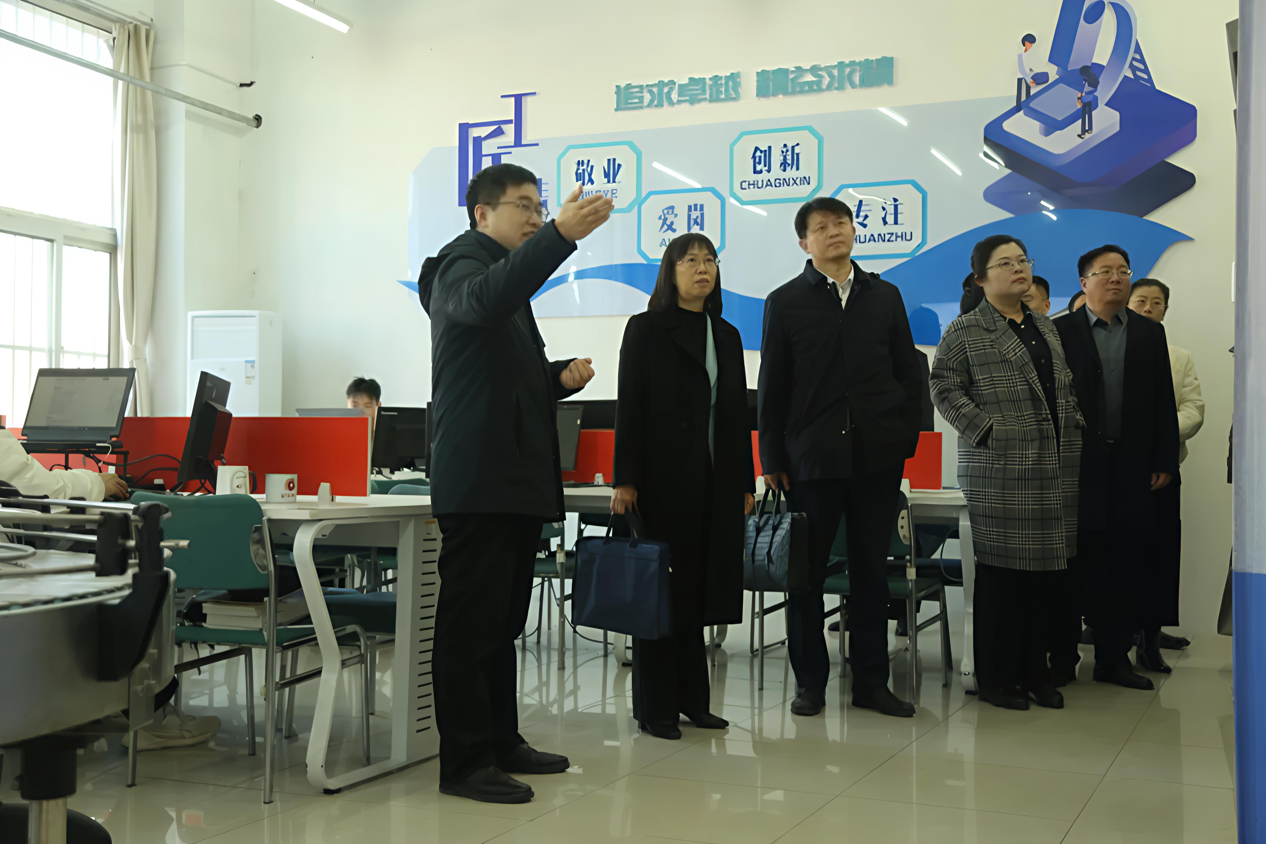 调研组一行实地考察了粮油食品学院、信息工程学院、智能制造学院,听取学校教学实训综合楼、智能制造产教融合实训中心、数字商务产教融合实训中心等在建项目介绍,详细了解学校办学条件、实训设施和教学成果。