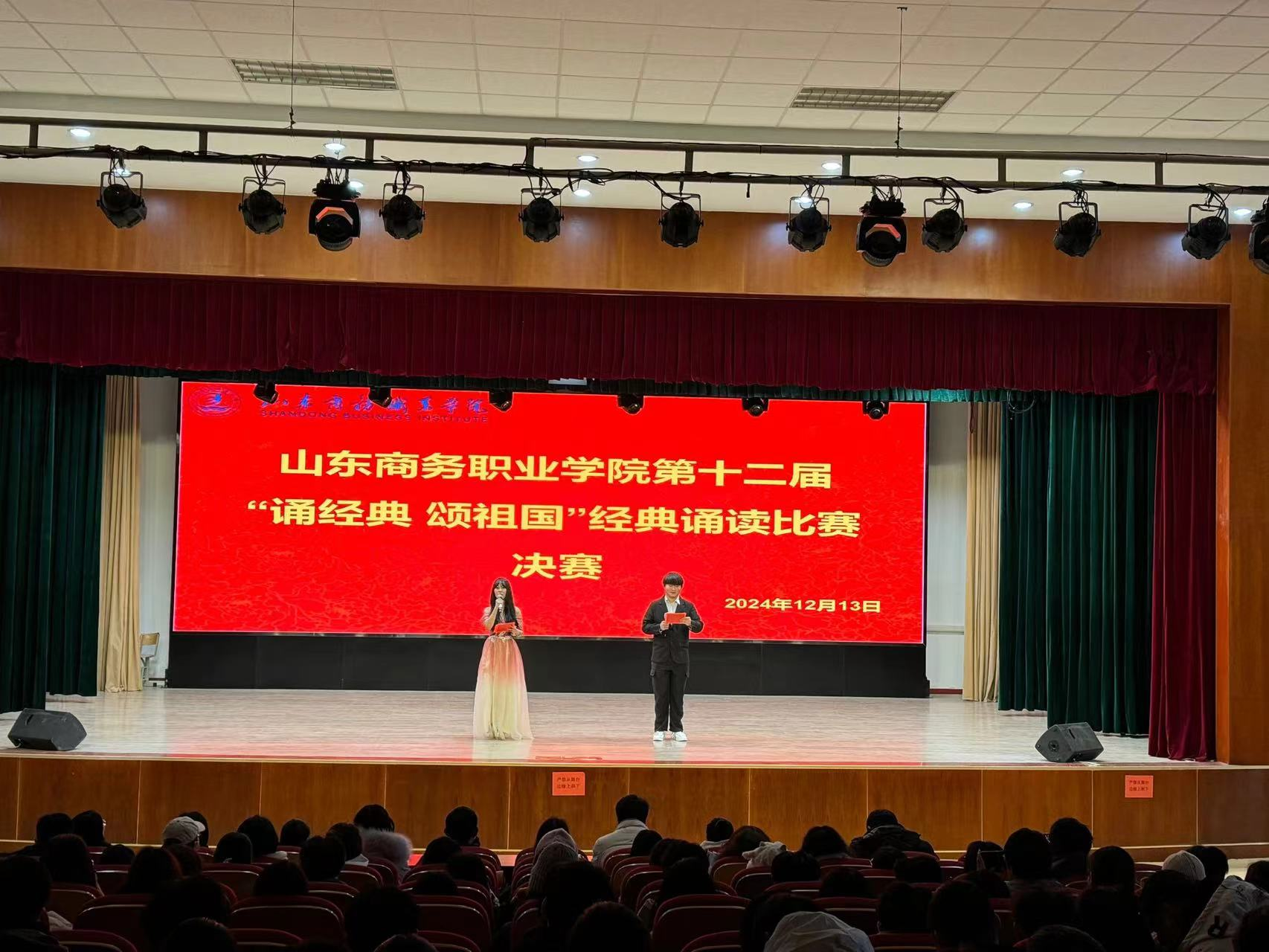 本站讯 12月13日下午,我校第十二届经典诵读比赛决赛在音乐厅举行,学校各二级学院负责人、基础教学部语文教研室全体教师以及来自各二级学院的学生代表共计400余人参加了此次活动。