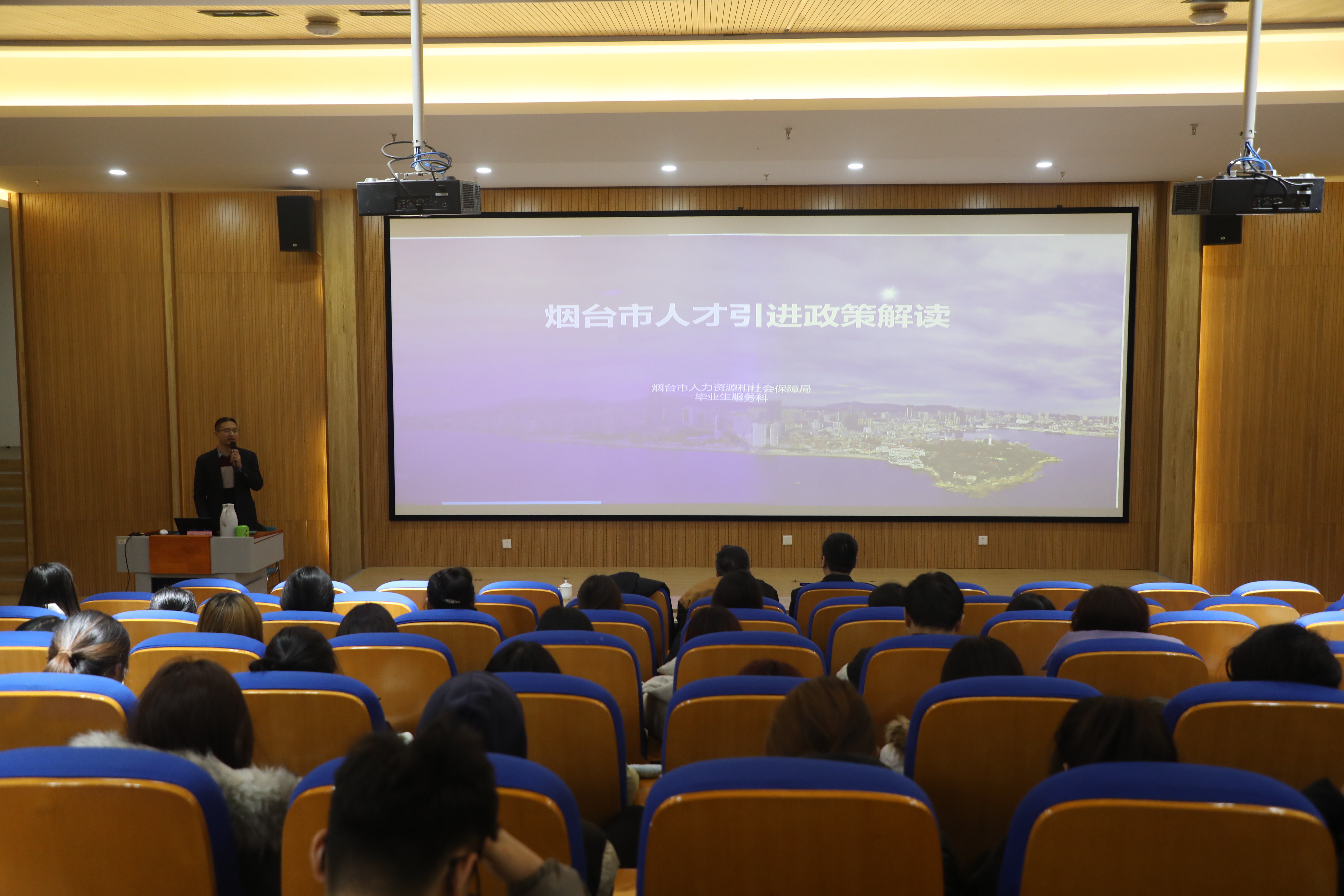 本站讯 近日,为多渠道开拓就业创业岗位,扩大高校毕业生就业创业政策的知晓度,引导毕业生树立积极正确的择业观和就业观,在2025届毕业生即将离校就业的关键节点,我校联合烟台市人力资源和社会保障局、烟台高新区人力资源服务中心在商务讲坛举办就业指导专题讲座,面对面向我校2025届毕业生开展烟台市及高新区购房补贴、生活补贴、人才公寓等就业政策和就业心态指导等内容的宣讲。各二级学院党总支书记、分管副院长、就业辅导员,校企合作与就业工作处全体工作人员及2025届毕业生代表参加活动。
