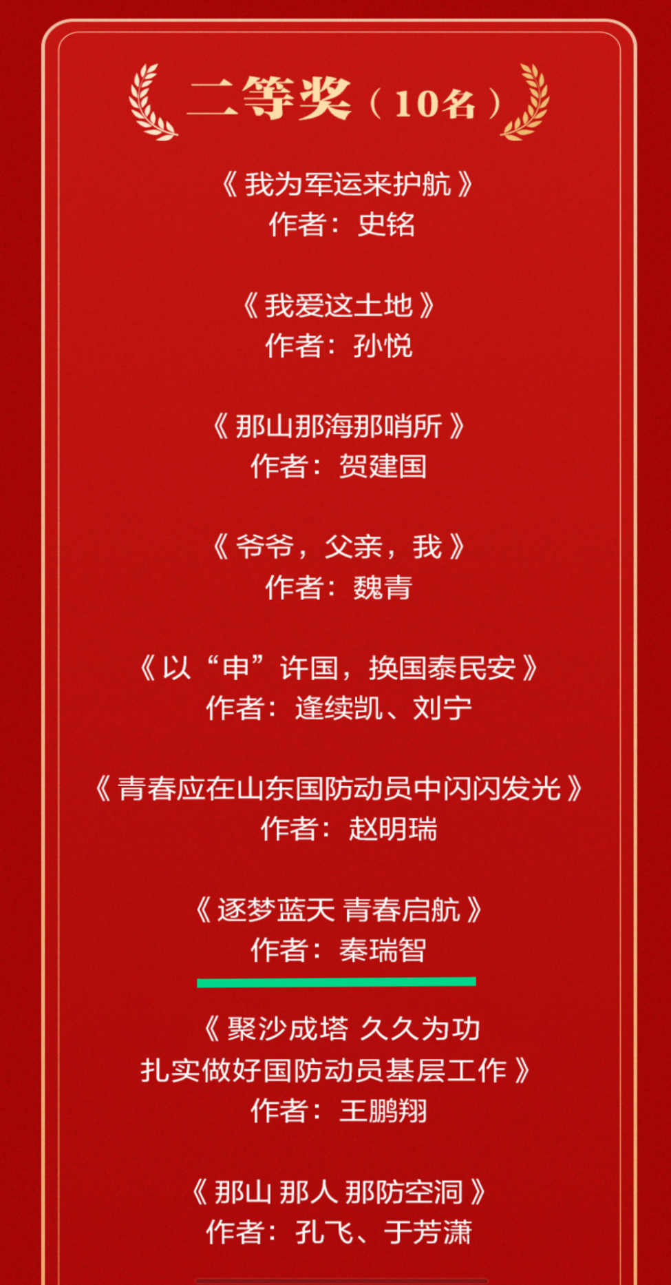 本站讯 为深入贯彻国防教育和国防动员相关法律法规,提高全省各界对国防事业的关注和热爱,山东省国防动员办公室与山东省教育厅联合举办了“我与国防动员”主题征文活动。我校强军思想先锋连秦瑞智同学,荣获二等奖。