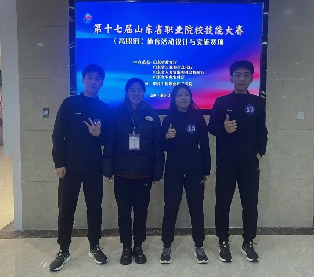 本站讯 12月13日至16日,第十七届山东省职业院校技能大赛高职组“体育活动设计与实施”赛项在烟台工程职业技术学院举办,来自全省的46支高职院校参赛队伍齐聚一堂,同台竞技。由我校经济管理学院王欣龙、会计金融学院姚沫冰、艺术设计学院王振羽组成的团队经过激烈角逐,最终荣获三等奖。